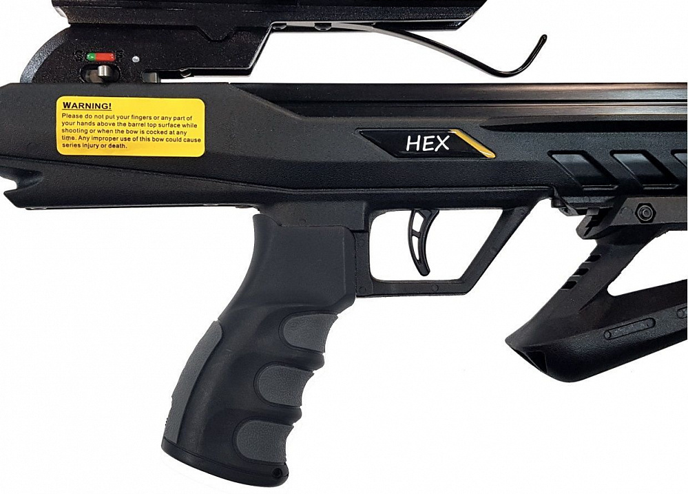 Арбалет блочный EK Archery HEX 400 (Хекс 400) – новинка 2020 года от компании ЕК Арчери обладающая феноменальной скоростью 122 метра в секунду, имея при этом малый вес в 3 кг и очень компактные габариты от оси до оси (ATA) и по длине. Если говорить о линейке блочных арбалетов от компании ЕК Archery, то можно смело сказать, что данная модель имеет габариты самого маленького блочного арбалета Blade 345 и злость и мощь флагманской модели Accelerator 410. Арбалет Хекс 400 оснащен двух сторонним предохранителем и защитой от холостого выстрела, успокоители тетивы сделают звук выстрела немного тише, а также продлят жизнь самим плечам, предотвращая лишний износ. Тактический регулируемый приклад позволяет настроить прикладку арбалета именно под Ваши физические данные, приклад имеет запас хода в 6,5 см. Сам приклад жестко зафиксирован на планке вивер двумя посадочными креплениями, позволяющие не допустить даже минимальный люфт. Арбалет имеет прорезиненную анатомическую рукоять. EK Archery Hex 400 имеет косое цевье установленное на нижнюю планку вивер, на которую при желании Вы можете установить сошки, тактический фонарь, лцу или набор для боуфишинга.