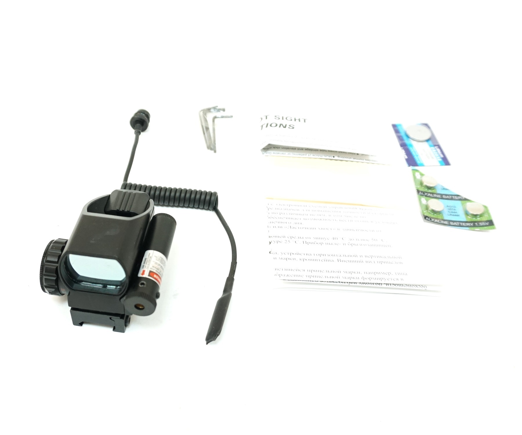 Для регулирования устройства в горизонтальной или вертикальной плоскости необходим шестигранник, включенный в комплектацию устройства. Кроме того, прицел комплектуется элементами питания, проводом для удаленного включения ЛЦУ, собственно ЛЦУ, а также специальной салфеткой для ухода за оптикой. Материал изготовления устройства – легкий алюминиевый сплав. Весит прицел всего 0,18кг, длина его 8,5см.