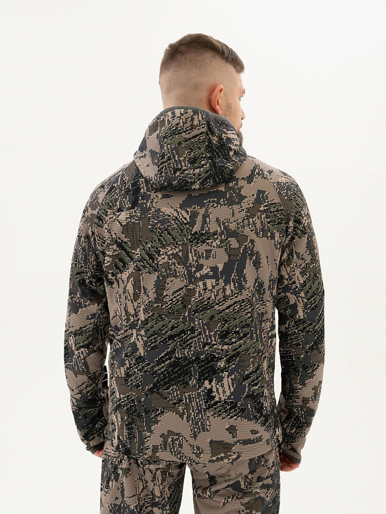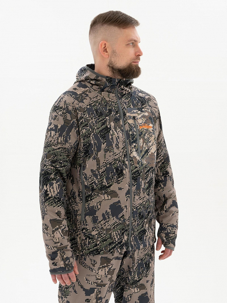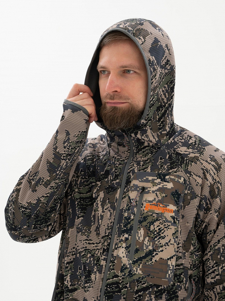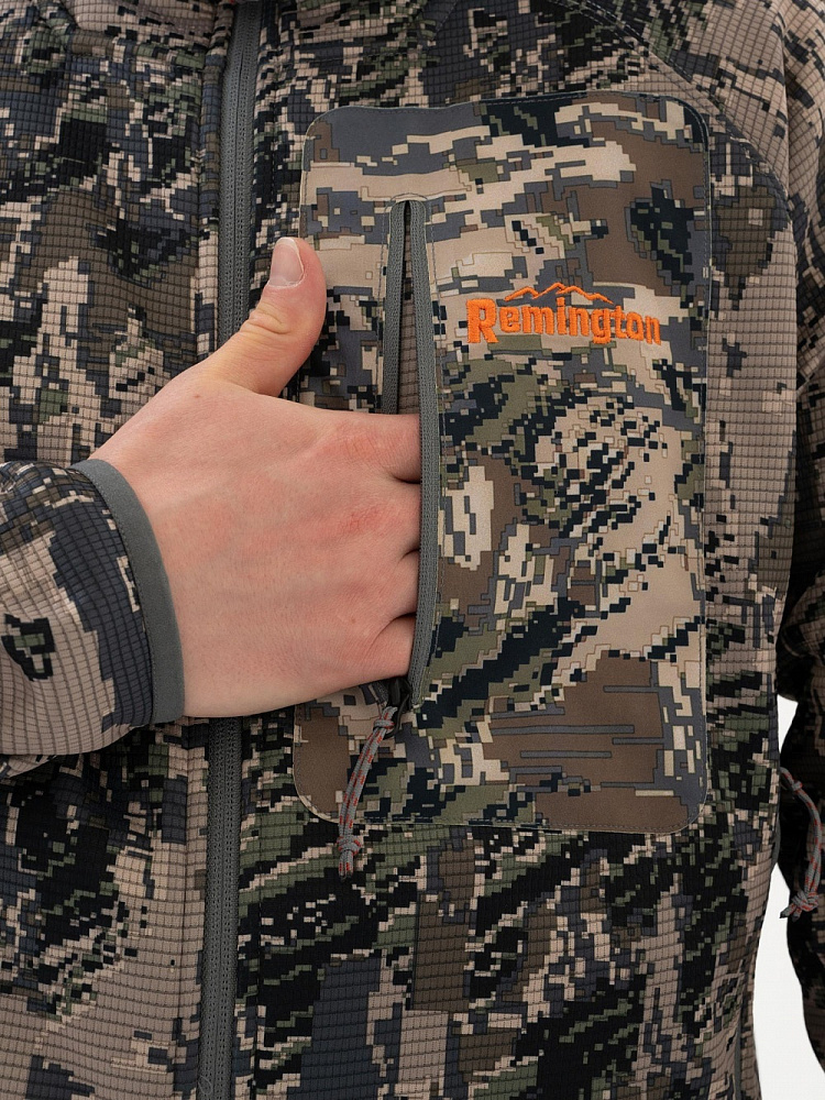 Костюм Remington Oreo выполнен из бесшумной ткани и подходит для охоты или активного отдыха на природе. Капюшон на куртке обеспечивает защиту от ветра и дождя, а внутренняя ветрозащитная планка на молнии дополнительно защищает от холода. Рукава плотно прилегают благодаря резинке, а отверстие под палец добавляет удобства.