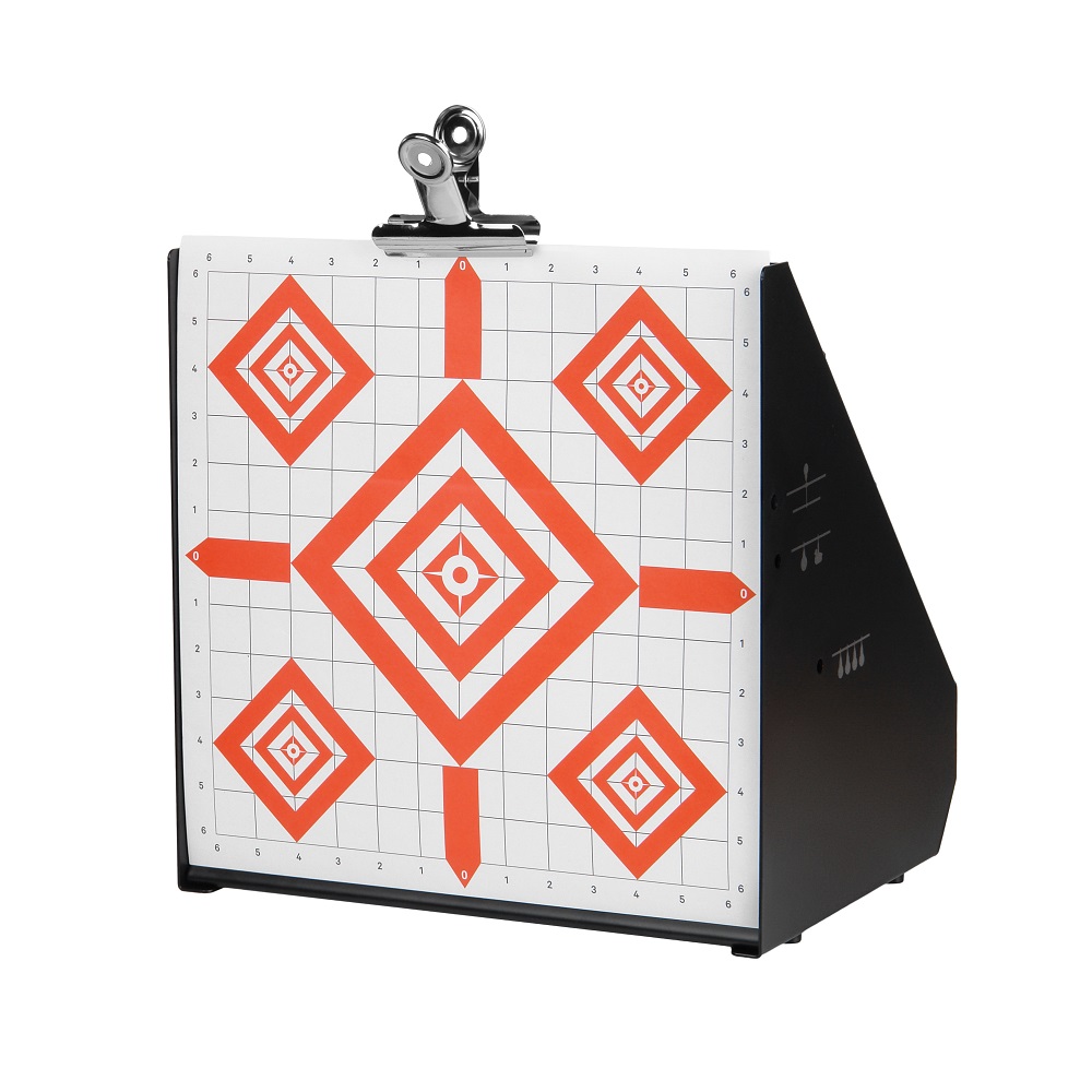 Глубокий пулеулавливатель со скошенными углами надежно удерживает пули внутри, предотвращая их отскок. Это позволяет безопасно использовать мишень на даче, в кемпинге или на стрелковой площадке.