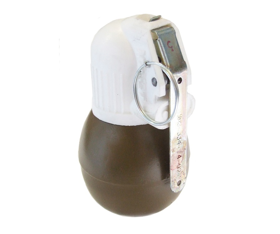 Муляж запала гранаты вывинчивается, можно извлечь чеку, рычаг отсоединяется как на боевой гранате.