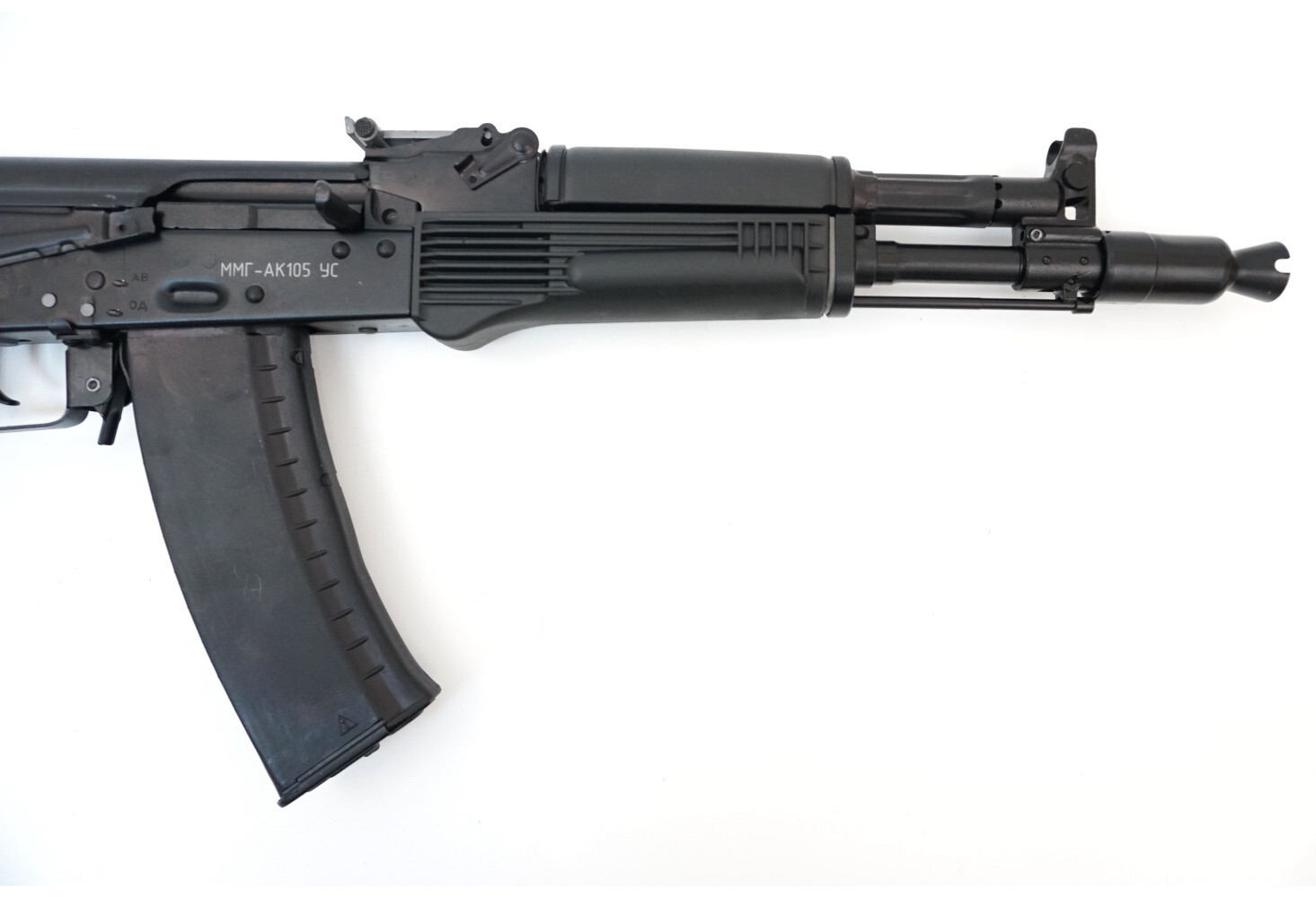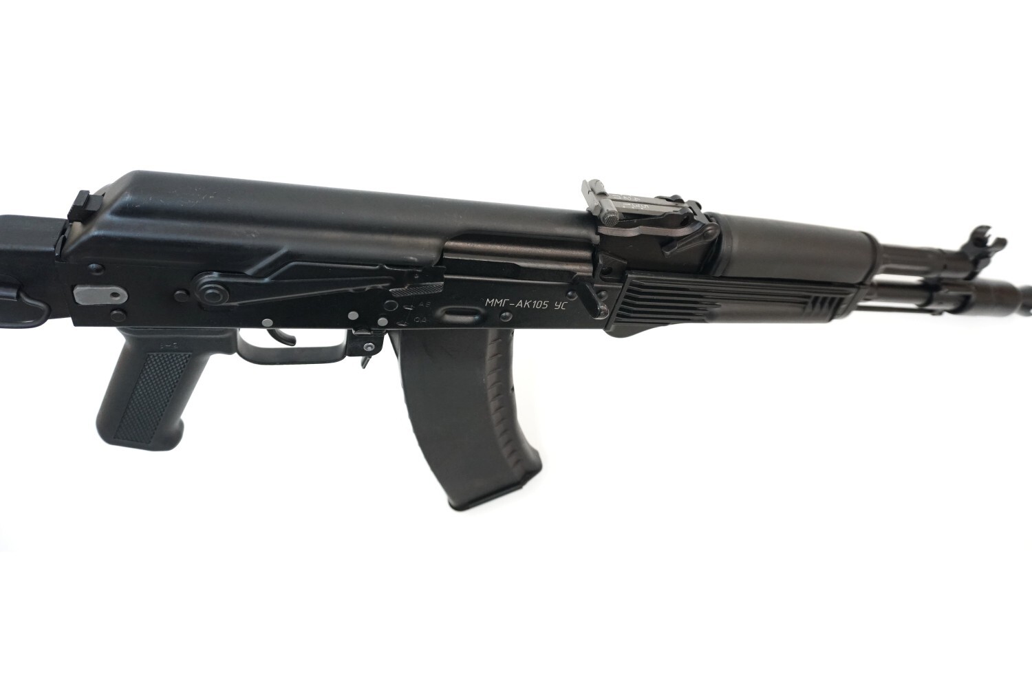 ММГ АК-105 является копией боевого АК-105 с укороченным стволом, созданного предприятием ИжМаш в середине 90х годов, на основе автомата АК-74М. Макет автомата Калашникова может использоваться военно-патриотическими кружками, а так же в школах на уроках ОБЖ. Макет АК-105 абсолютно безопасен, его можно доверить даже малоопытному новичку. ММГ позволяет производить как неполную, так и полную разборку-сборку автомата, взведение затвора и холостой спуск, постановку на предохранитель и снятие с него, перевод режимов огня, отсоединение-присоединение магазина и изготовку к бою.