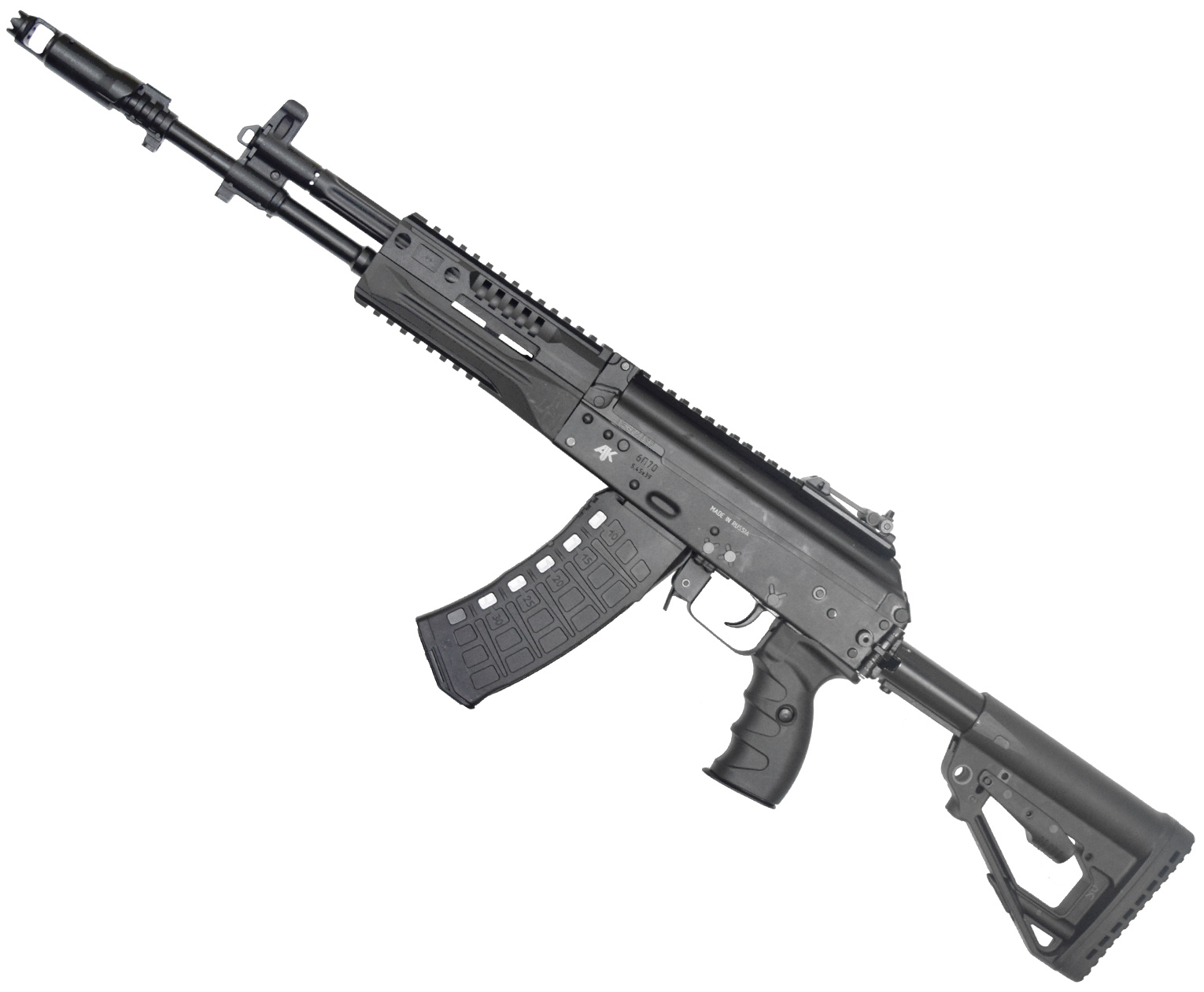 Особенности | Самый современный автомат Калашникова, находящийся на вооружении у ФСБ и других спец служб. Снабжен складным телескопическим прикладом и набором планок для установки прицелов и другого доп оборудования |