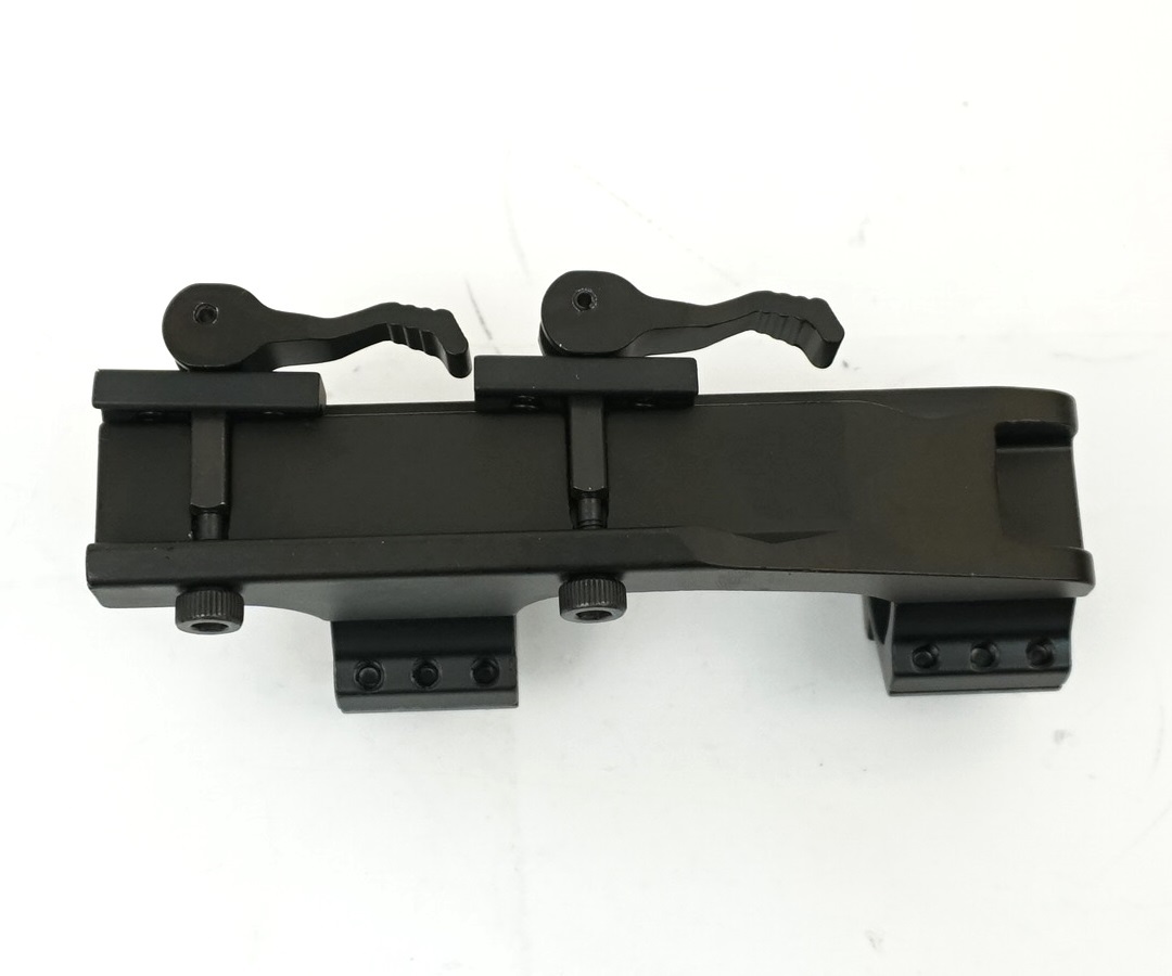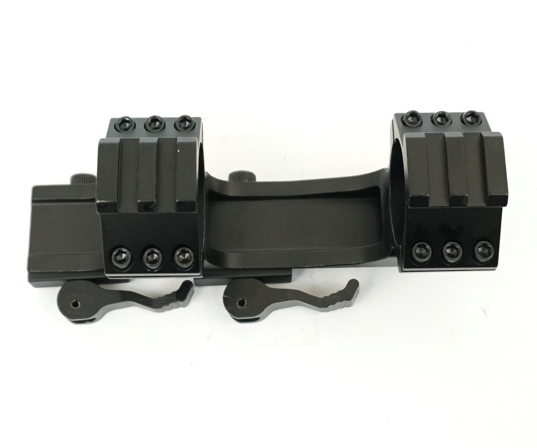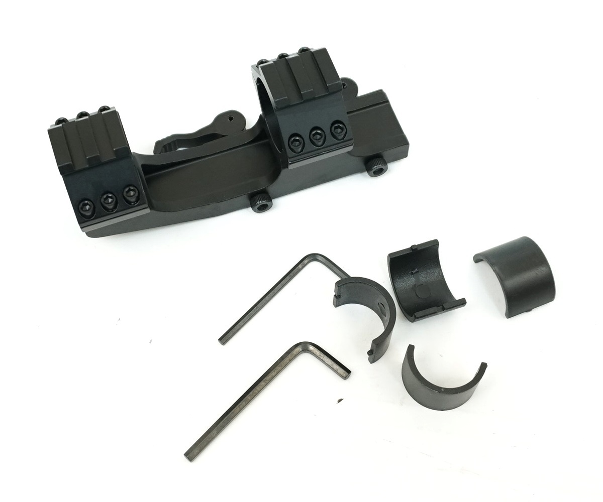 BH-MS16 – высокопрофильный быстросъемный монолитный кронштейн с кольцами, с высотой посадки 21 мм, пригодится для установки оптических и коллиматорных прицелов с размером трубки 25,4 или 30 мм, на планку Weaver. Корпус моноблока, длиной 135 мм, с выносом 35 мм выполнен из алюминиевого сплава, поверхность анодирована, устойчива к коррозии. Фиксируется на базе оружия двумя защелками, которые можно прикрутить рукой. Тройное крепление колец.
