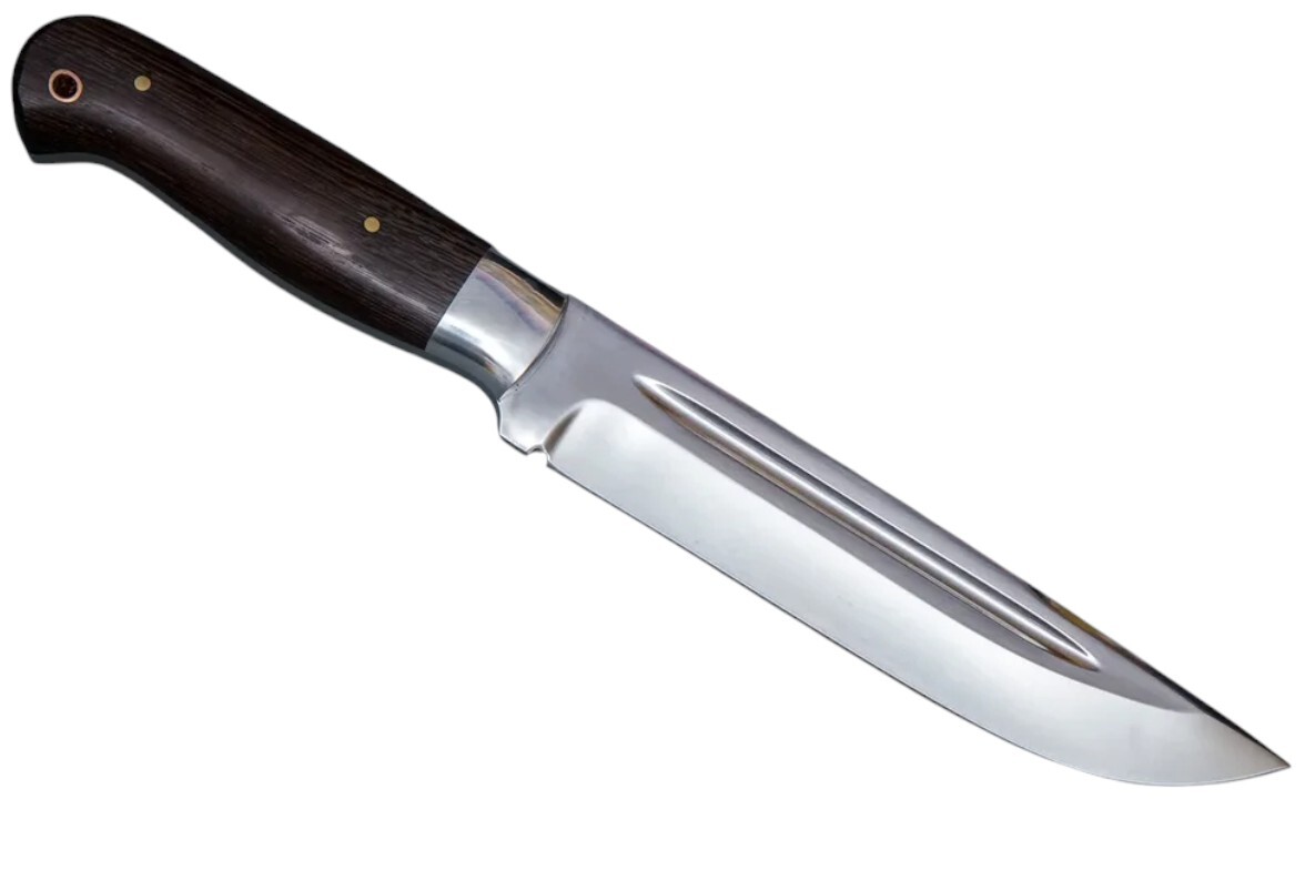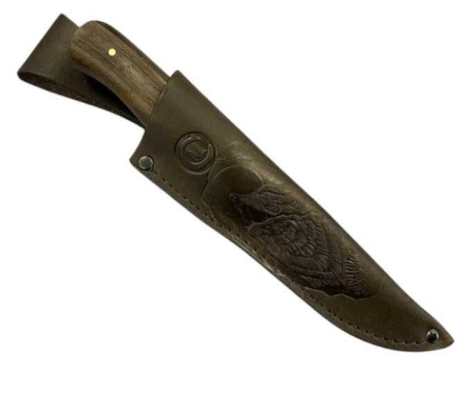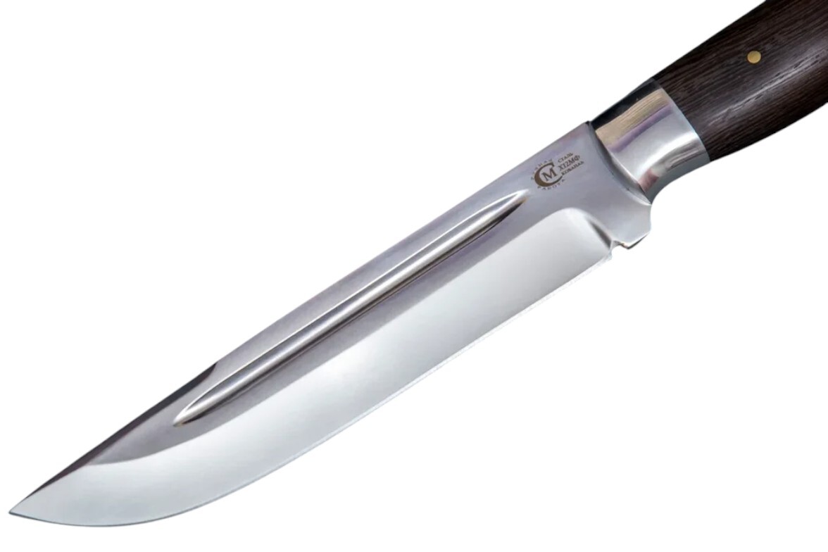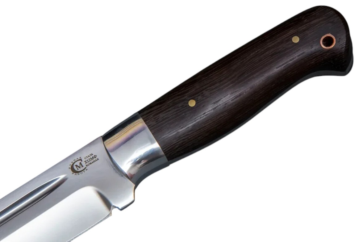 Нож цельнометаллический Оборотень сделанный вручную мастерами кузницы Сёмина из города Ворсма. При ковке клинка использовалась сталь Х12МФ, твердость которой составляет 60 - 62 HRC.