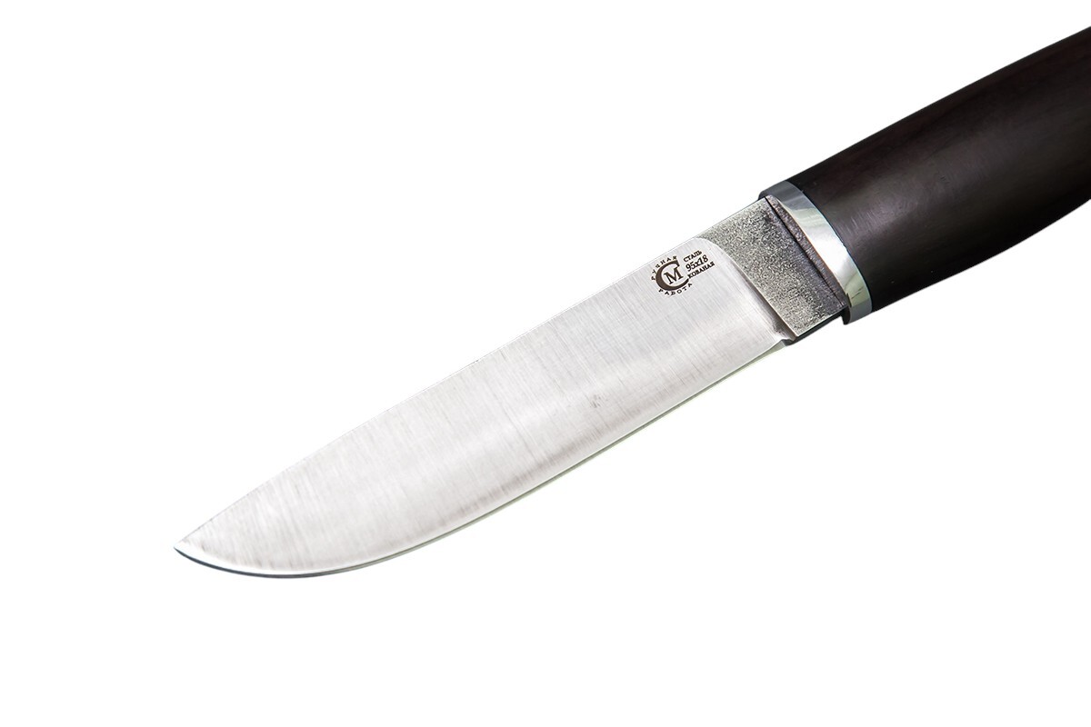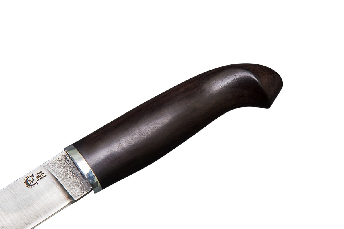 Клинок ножа выполнен из кованой стали, которая пользуется популярностью у туристов, рыболовов и охотников.