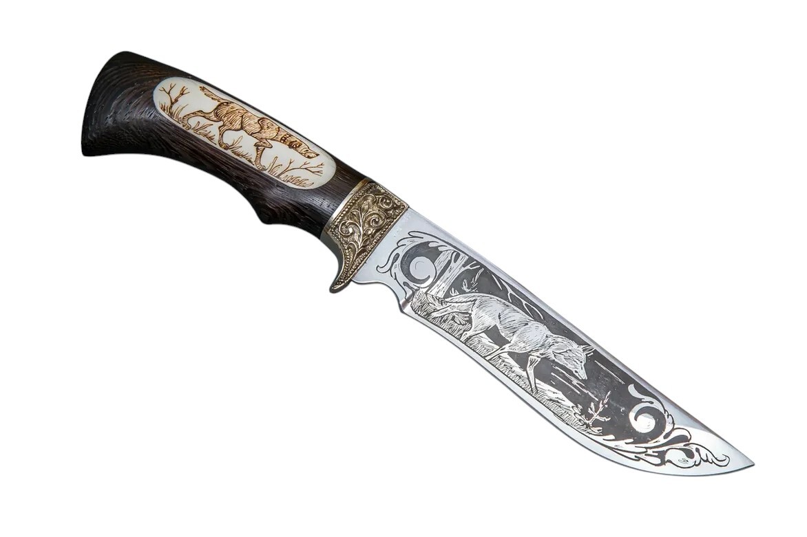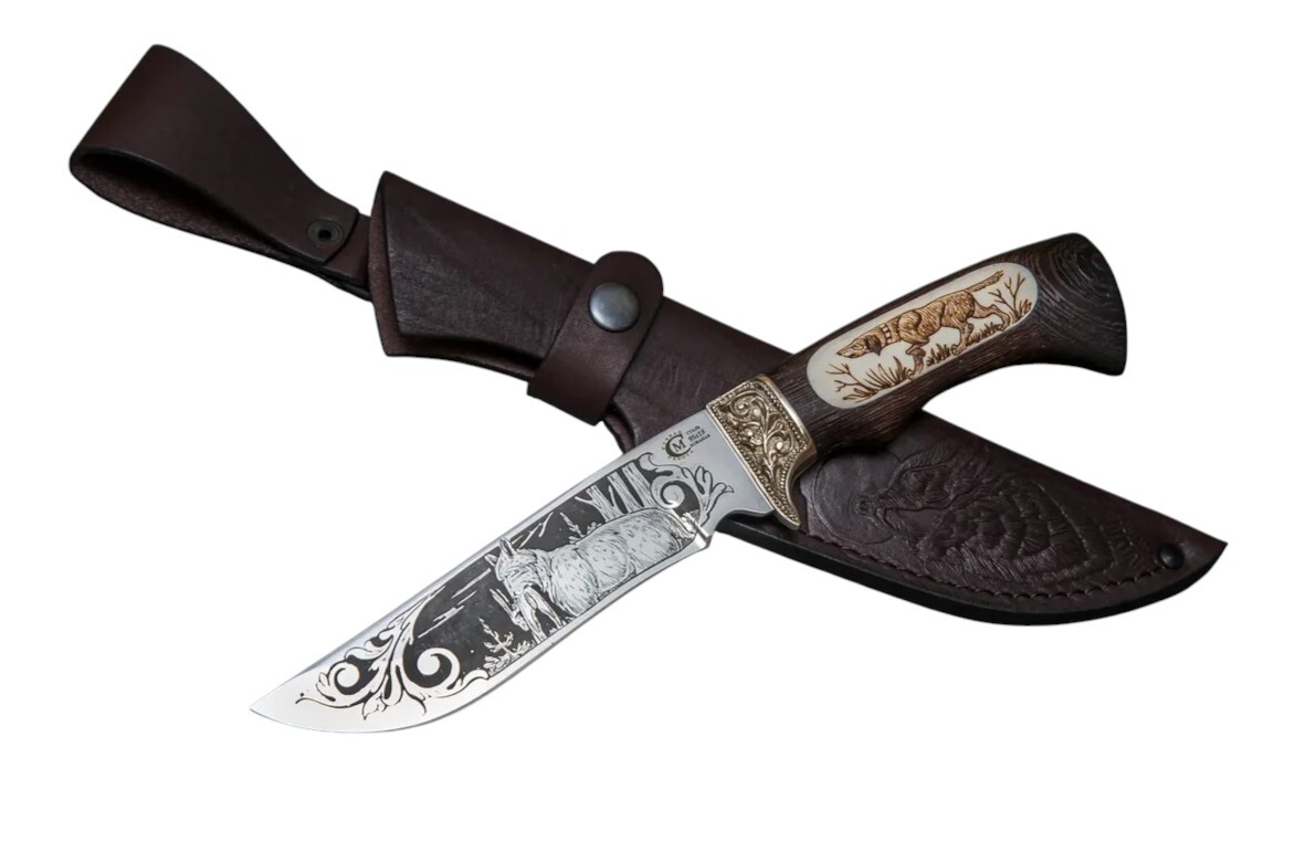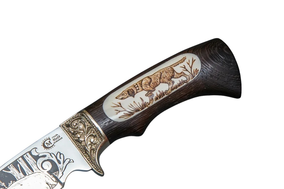 Нож кузница Семина Галеон кованый 95x18 венге, литье, кость, гравировка