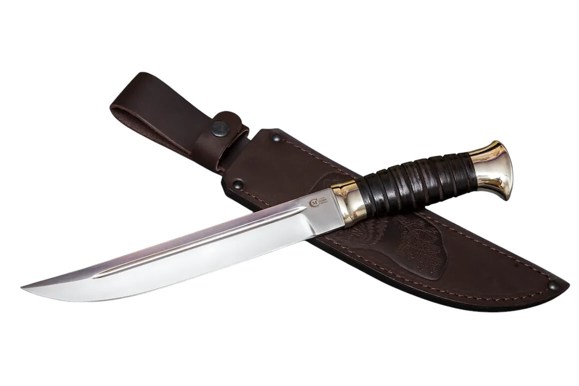 Нож кузница Семина Казак, сталь Х12МФ кожа, резная рукоять