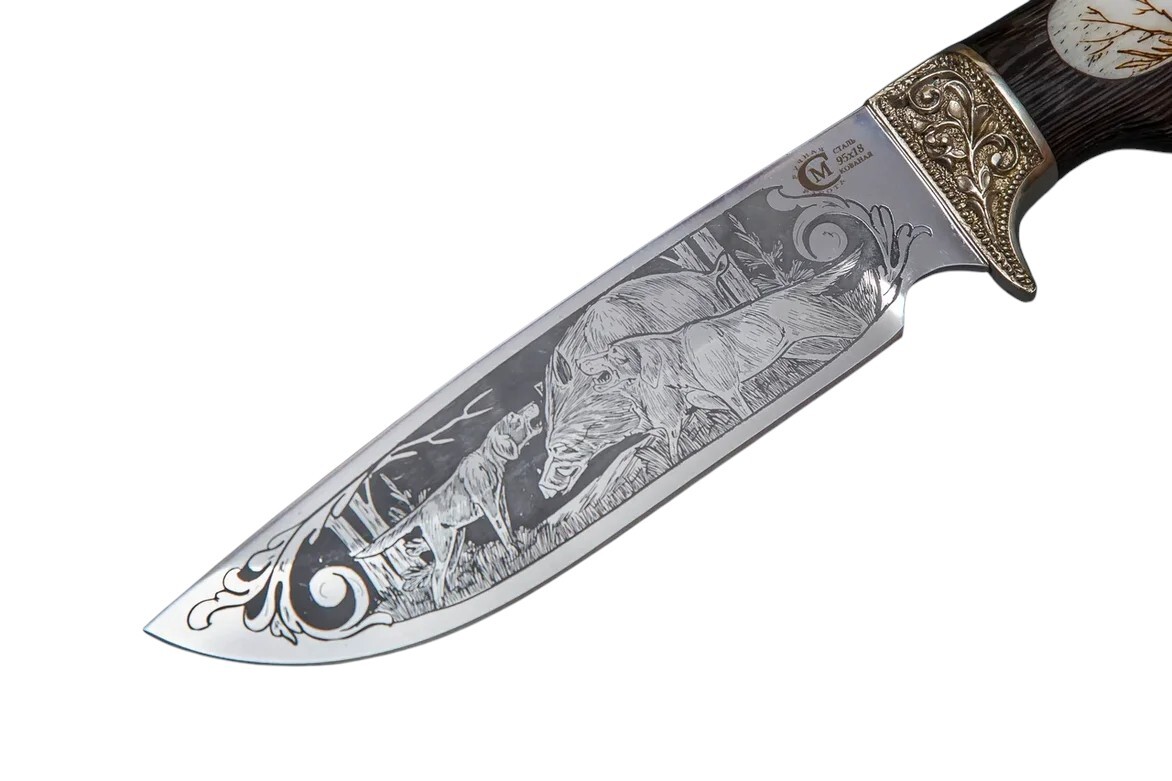 Нож кузница Семина Лорд кованый 95x18 венге, литье, кость, гравировка