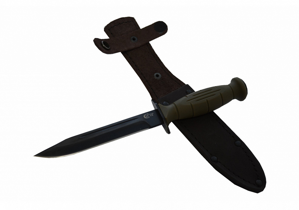 Нож НР-43 сделанный вручную мастерами кузницы Сёмина из города Ворсма, Нижегородской области. При изготовлении клинка использовалась сталь У8, с твердостью которая составляет 54 - 56 HRC (Чем выше показатель, тем надежнее и долговечнее нож). При производстве рукояти используется Elastron.