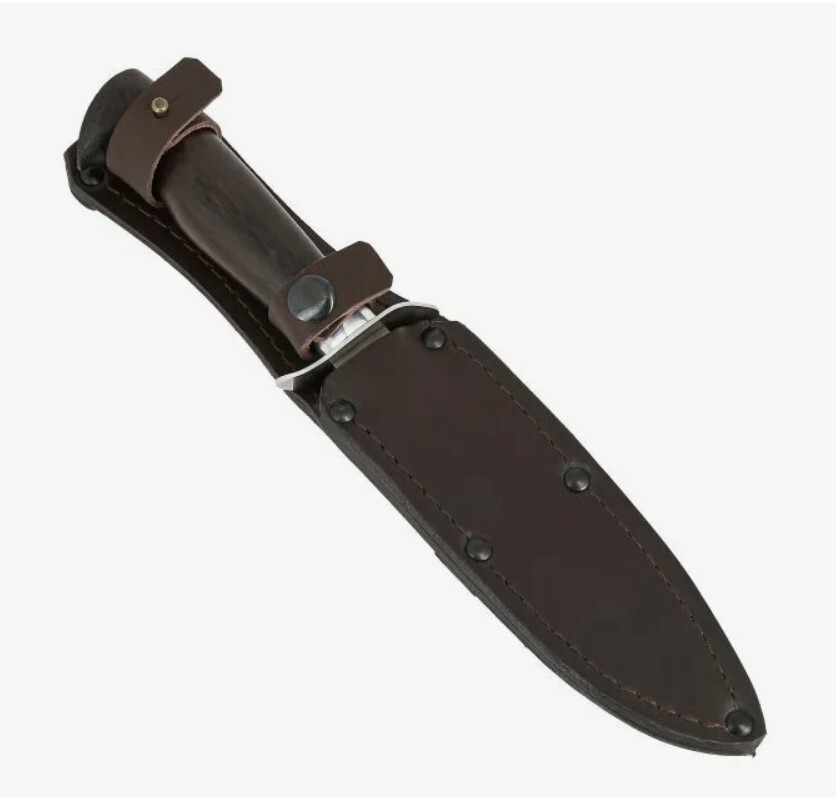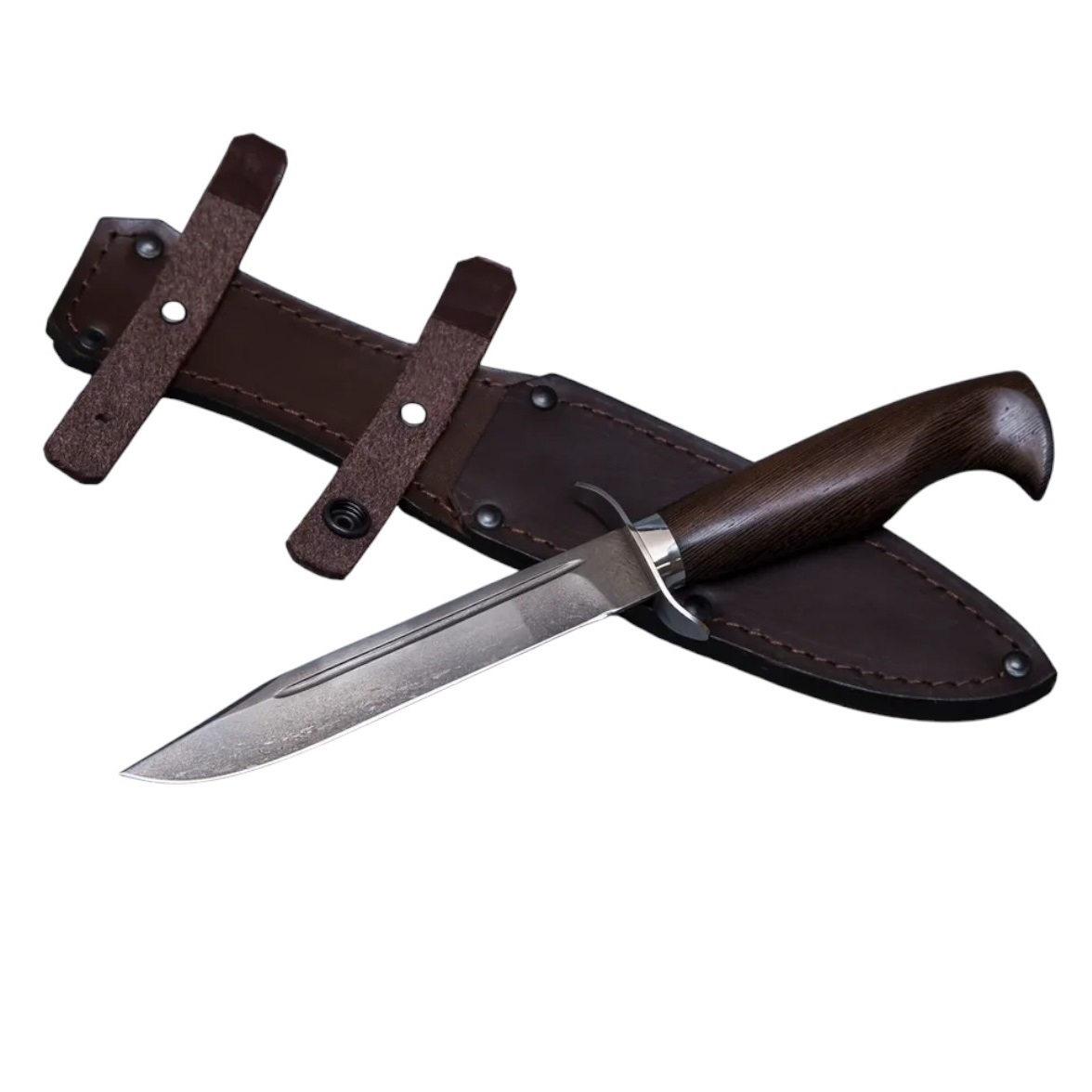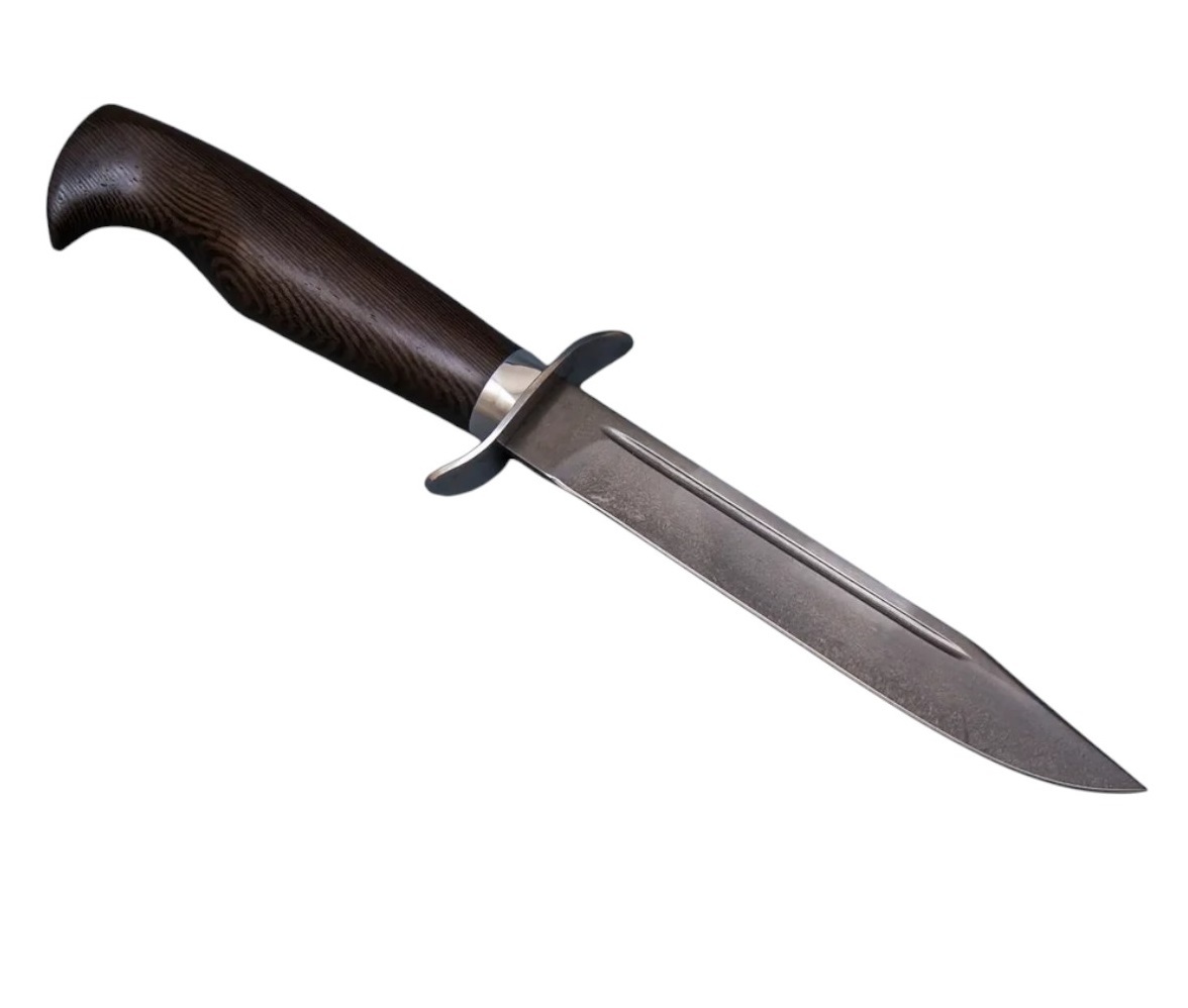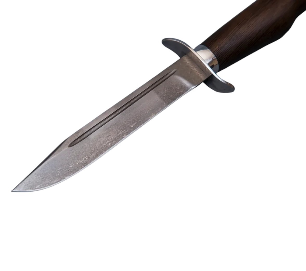 Нож Разведчик сделанный вручную мастерами кузницы Сёмина из города Ворсма. При ковке клинка использовалась сталь Х12МФ, твердость которой составляет 60 - 62 HRC.
