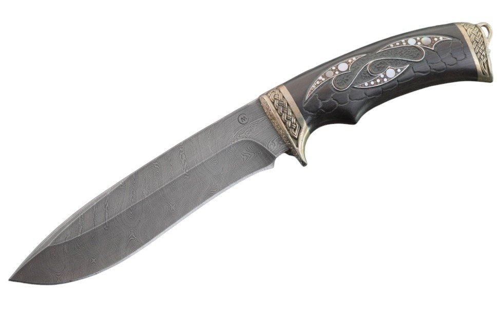 Нож Скиф, дам. сталь, литье, черное дерево, инкрустация