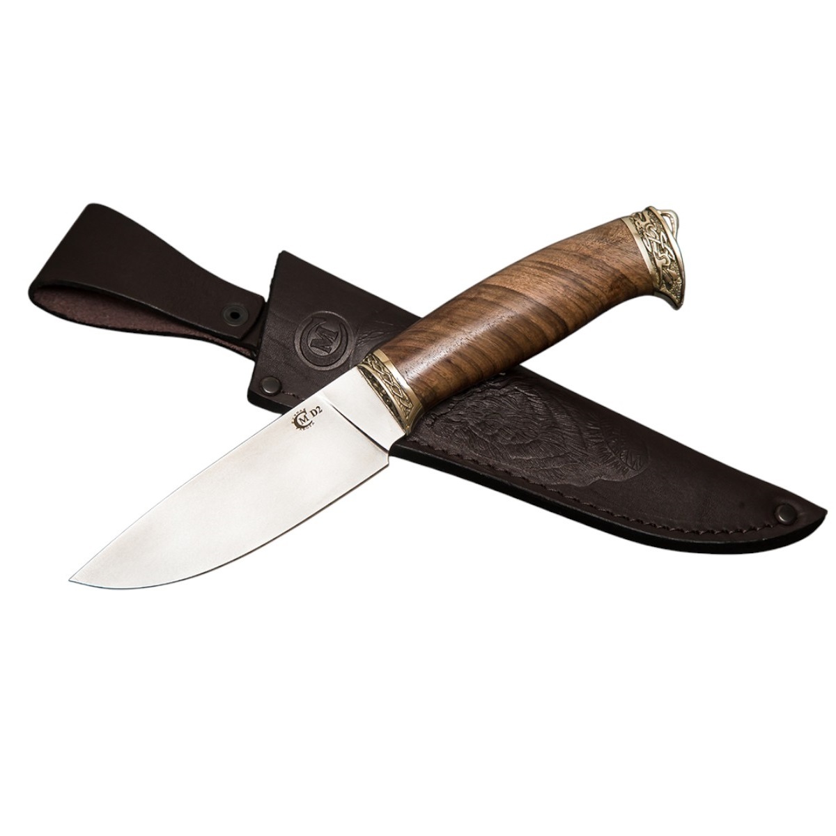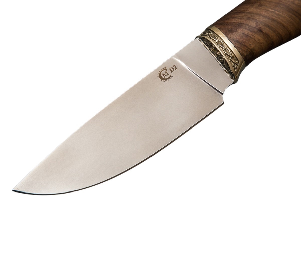 Нож Сокол сделанный вручную мастерами кузницы Сёмина из города Ворсма, Нижегородской области. При изготовлении клинка использовалась сталь D2, с твердостью которая составляет 60 - 62 HRC (Чем выше показатель, тем надежнее и долговечнее нож).