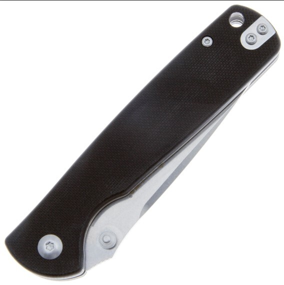 Эргономическая рукоять с стеклотекстолитовыми (G10) накладками черного цвета. Они крепятся на конструкции при помощи пары винтов и имеют шероховатую поверхность, чтобы модель не выскальзывала из руки во время использования. Длина рукояти составляет 112 миллиметров и подходит обладателям ладони любого размера.