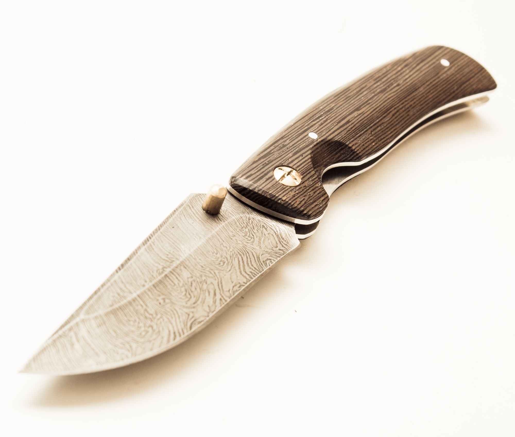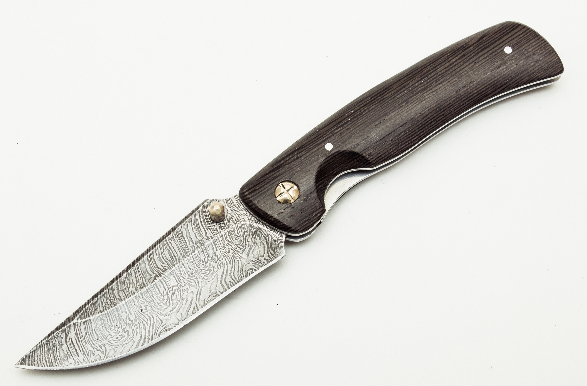 Универсальный складной нож из дамаска выполнен в традиционной для северо-американских ножей манере. Клинок из дамасской стали повторяет геометрию ножей первых поселенцев. Такая геометрия проверена временем. Каждому охотнику был нужен универсальный нож фолдер, который можно было использовать для приготовления пищи или разделки добычи.