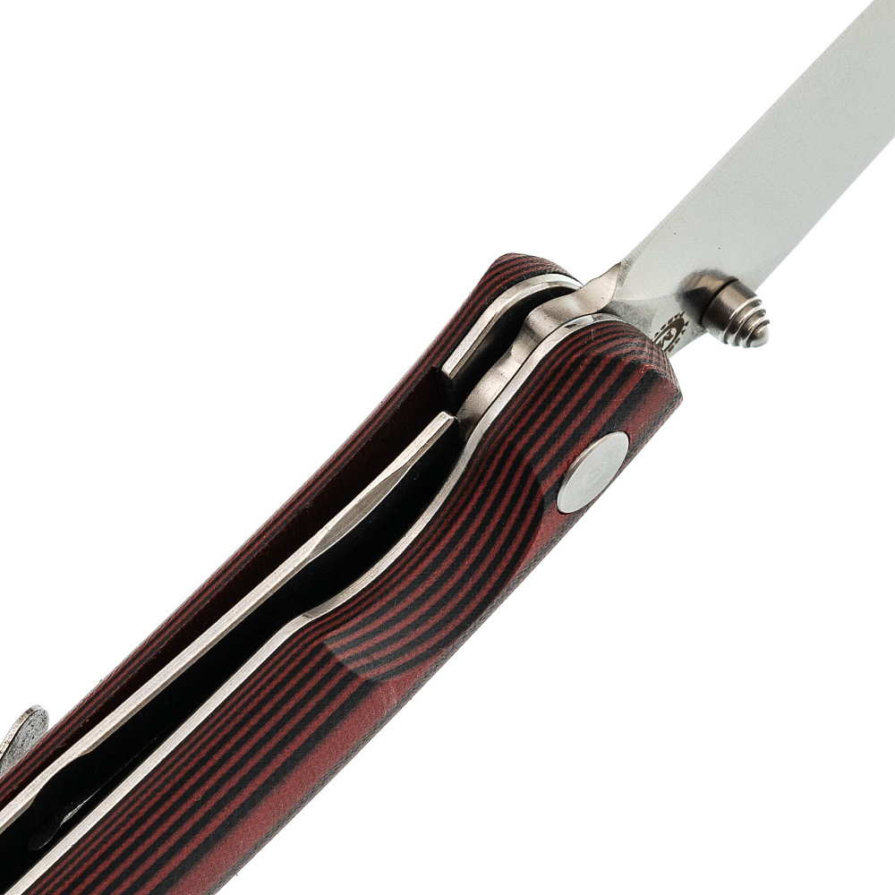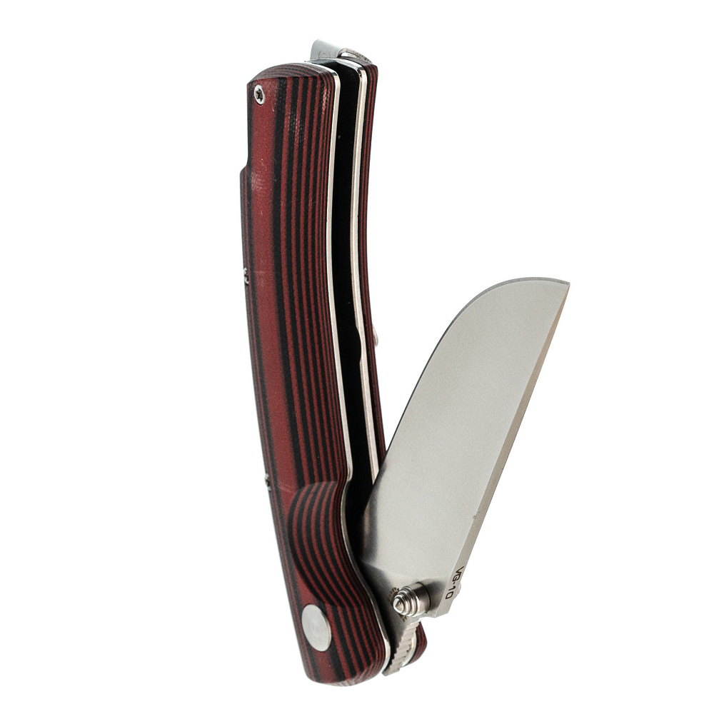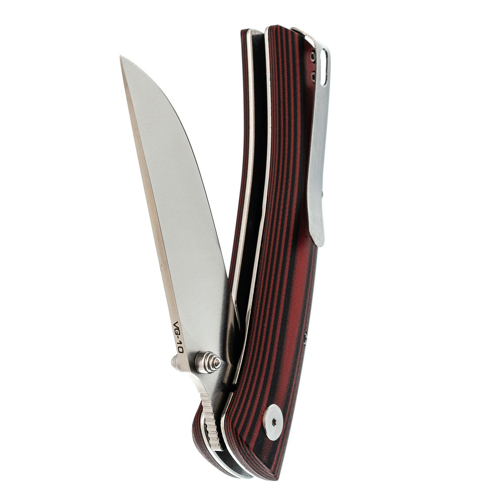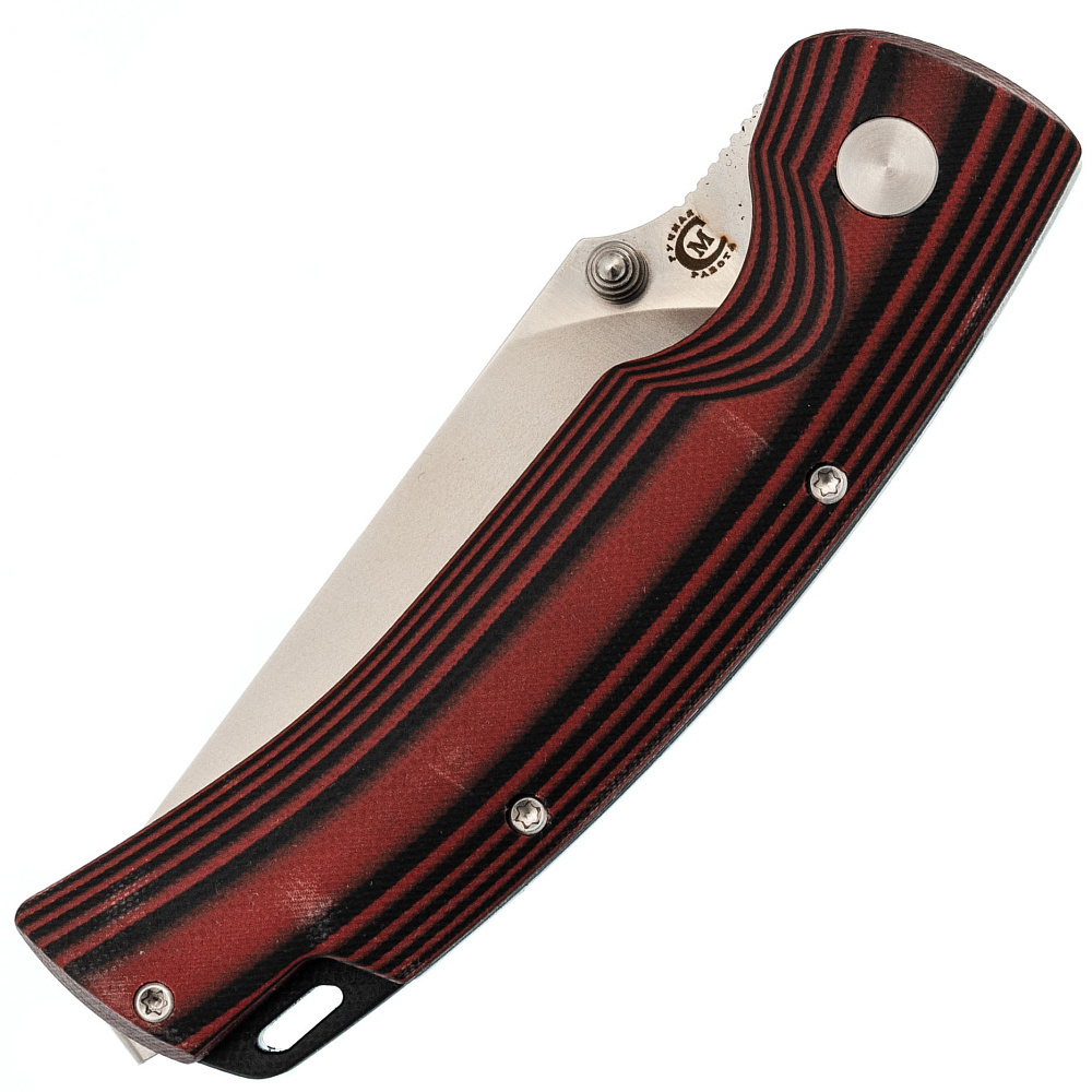 Рукоять выполнена из стеклотекстолита G10 – это композитный материал, состоящий из стеклоткани и эпоксидной смолы. Он очень прочный, влагонепроницаемый и ударостойкий. G10 прекрасно поддается обработке и окрашиванию.