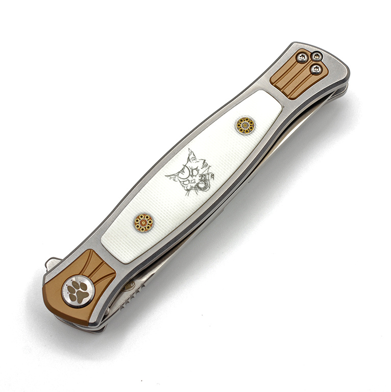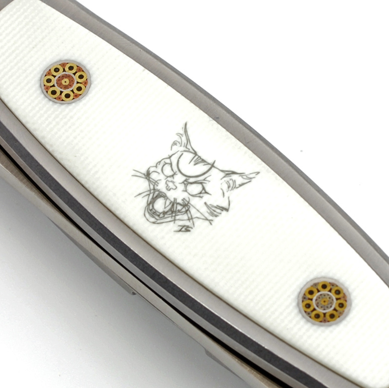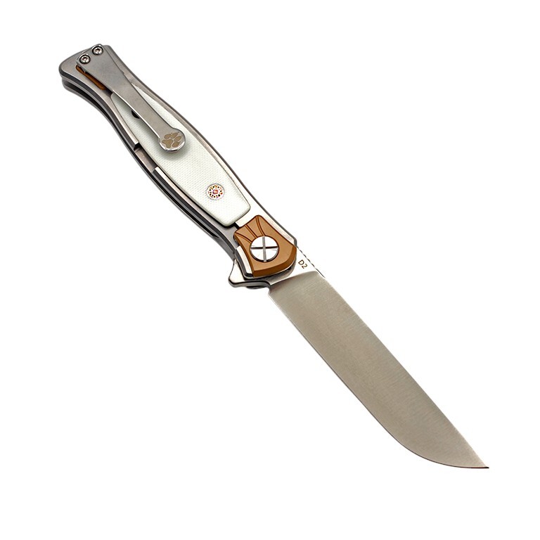 Рукоять ножа КОТ01 выполнена из белого G10 и имеет клипсу для ношения ножа в кармане или на ремне.