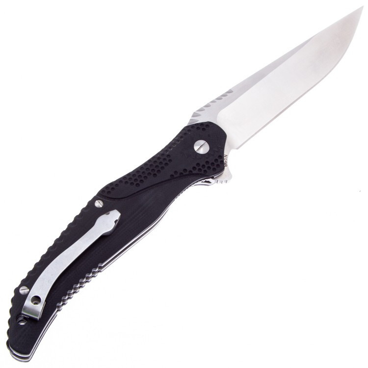 Сталь клинка 9Cr18MoV — это хороший вариант, для недорогих повседневных ножей, она не выдает каких-то сверхъестественных показателей, но за свою цену дает весьма неплохие характеристики. Заточку сталь держит средне, но зато легко точится. Открывается нож с помощью системы открывания складных ножей IKBS. Она была разработана в 2002 году бразильскими мастерами – Флавио Икома и братьями Лала. В системе IKBS (Ikoma Korth Bearing System) вместо шайб, используются шариковые подшипники. Это заметно облегчает ход клинка.