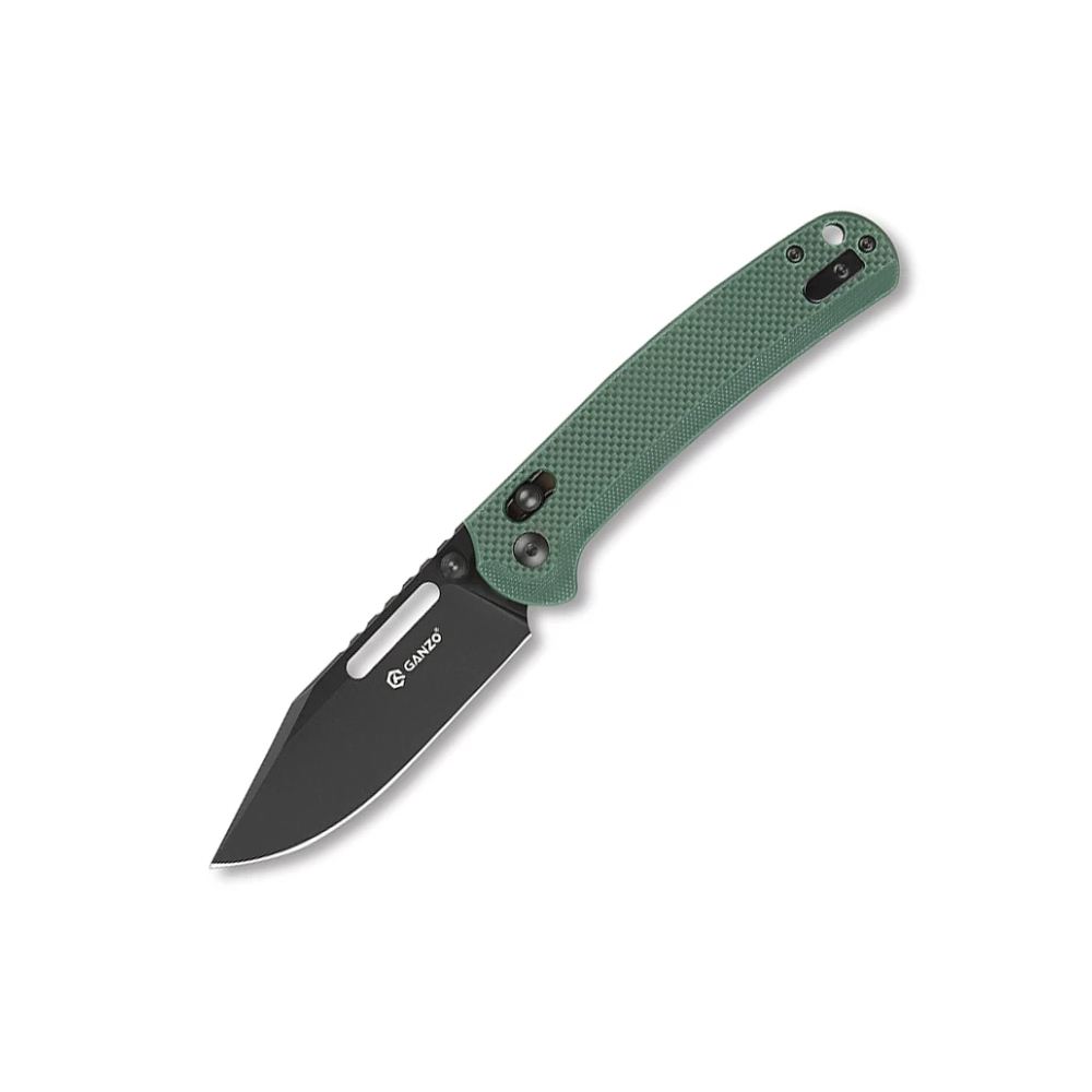 Рукоятка выполнена из прочного композитного материала G10, который не подвержен механическим повреждениям и воздействию влаги. Особенность ножа Ganzo G768PT-GB — замок Axis Lock.