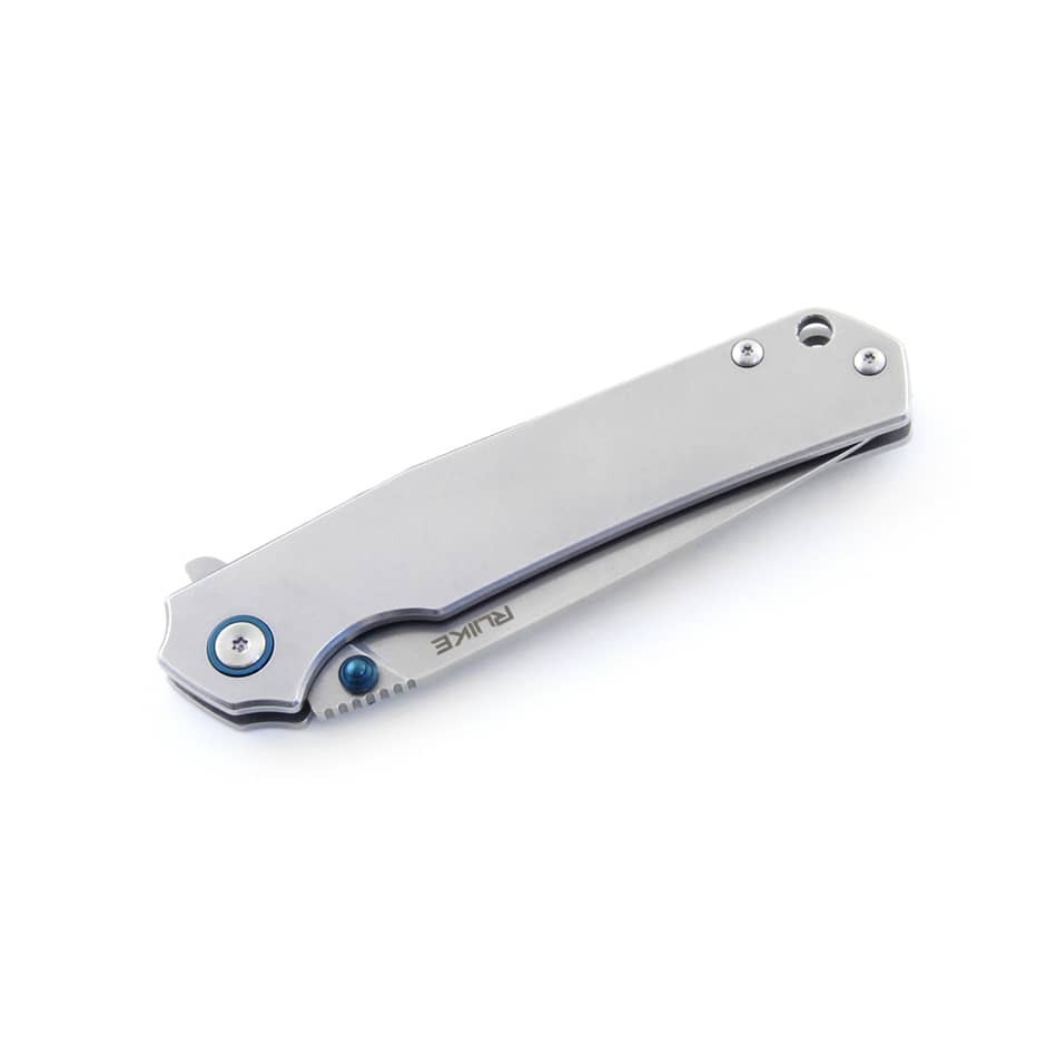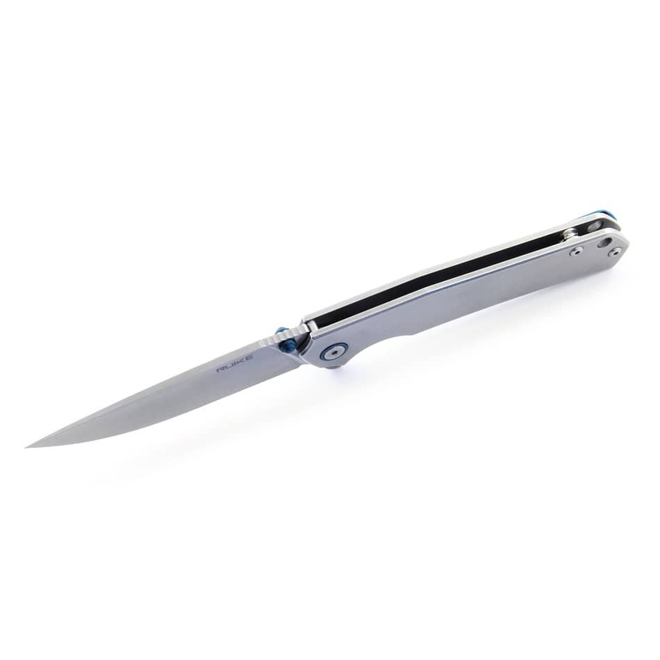 Ruike P801 – удобный складной нож, который можно использовать в городе или на природе. Он довольно компактный: длина составляет 114 мм., а масса – всего 120 грамм. Его удобно переносить, ведь на ручке есть ещё специальный зажим для крепления на карман, ремень или другую одежду. Дизайн минималистичный, но при этом нож очень стильный. За закрытие и надёжное удержание клинка отвечает механизм типа Frame Lock.