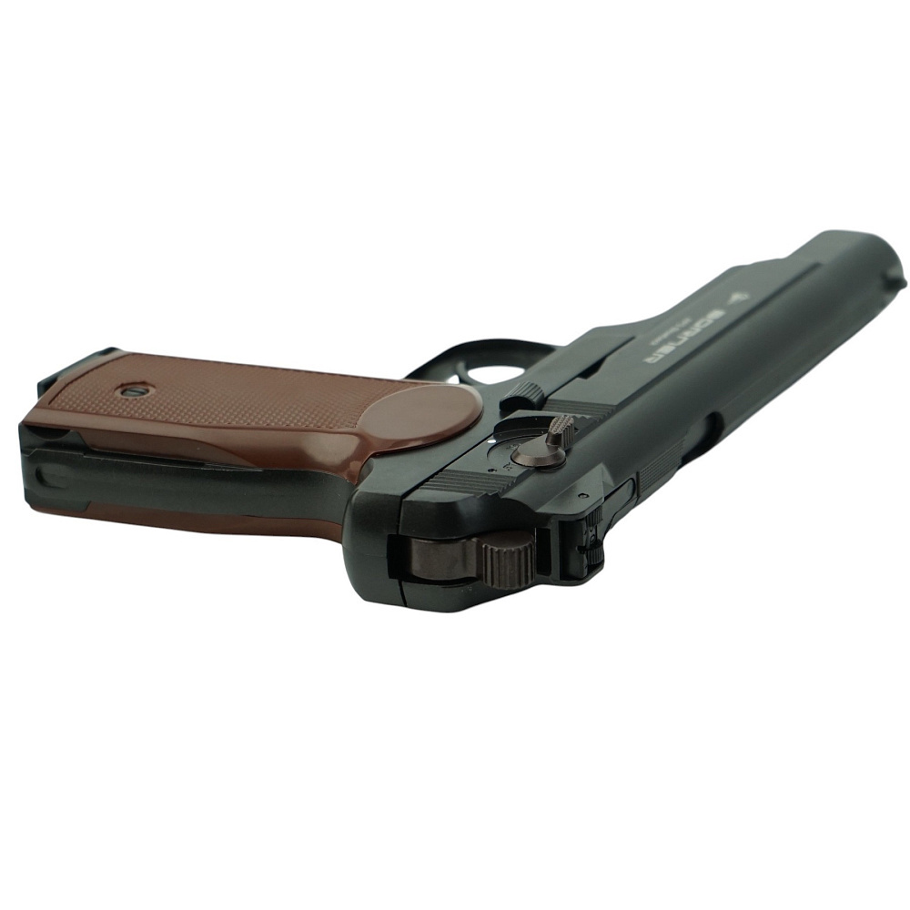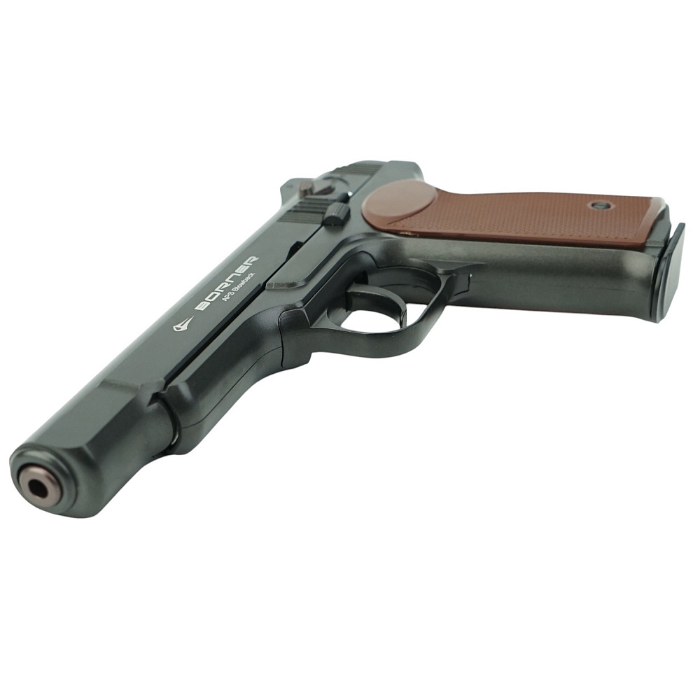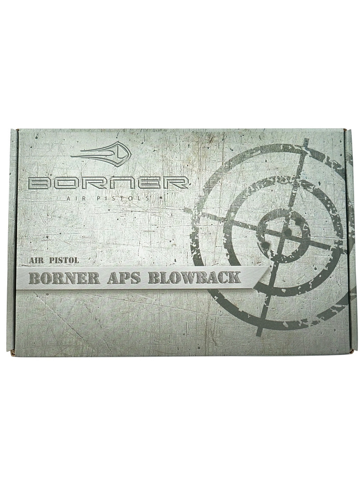 Borner APS Blowback — это металлическая версия пистолета Стечкина (АПС) с функцией Blowback. Корпус изготовлен из металла. Механизм остался прежним, поэтому начальная скорость выстрела так же достигает до 130 м/с. Затвор здесь подвижный. Присутствует также надежный предохранитель для избежания внезапного выстрела. С эргономикой у модели Borner APS полный порядок.