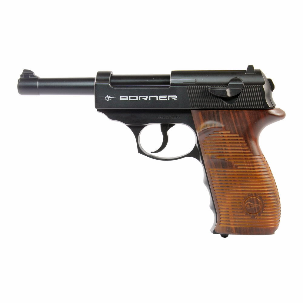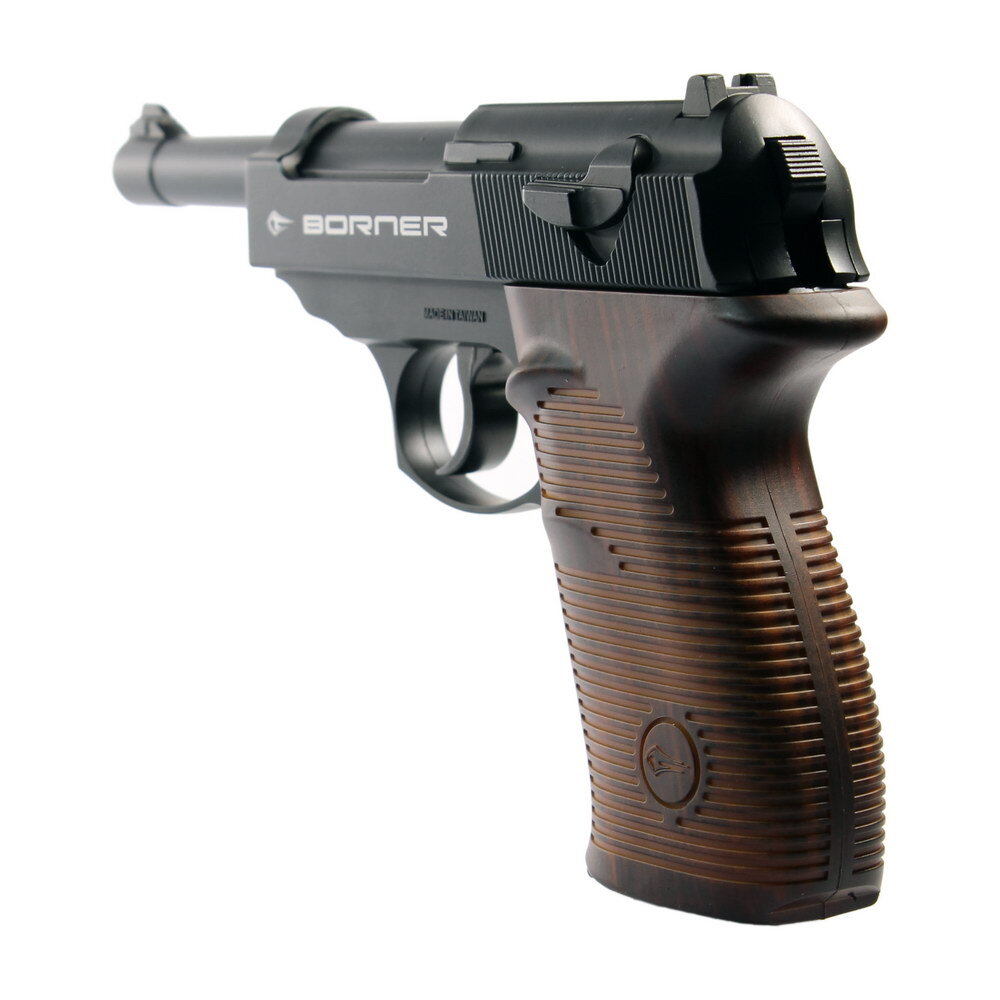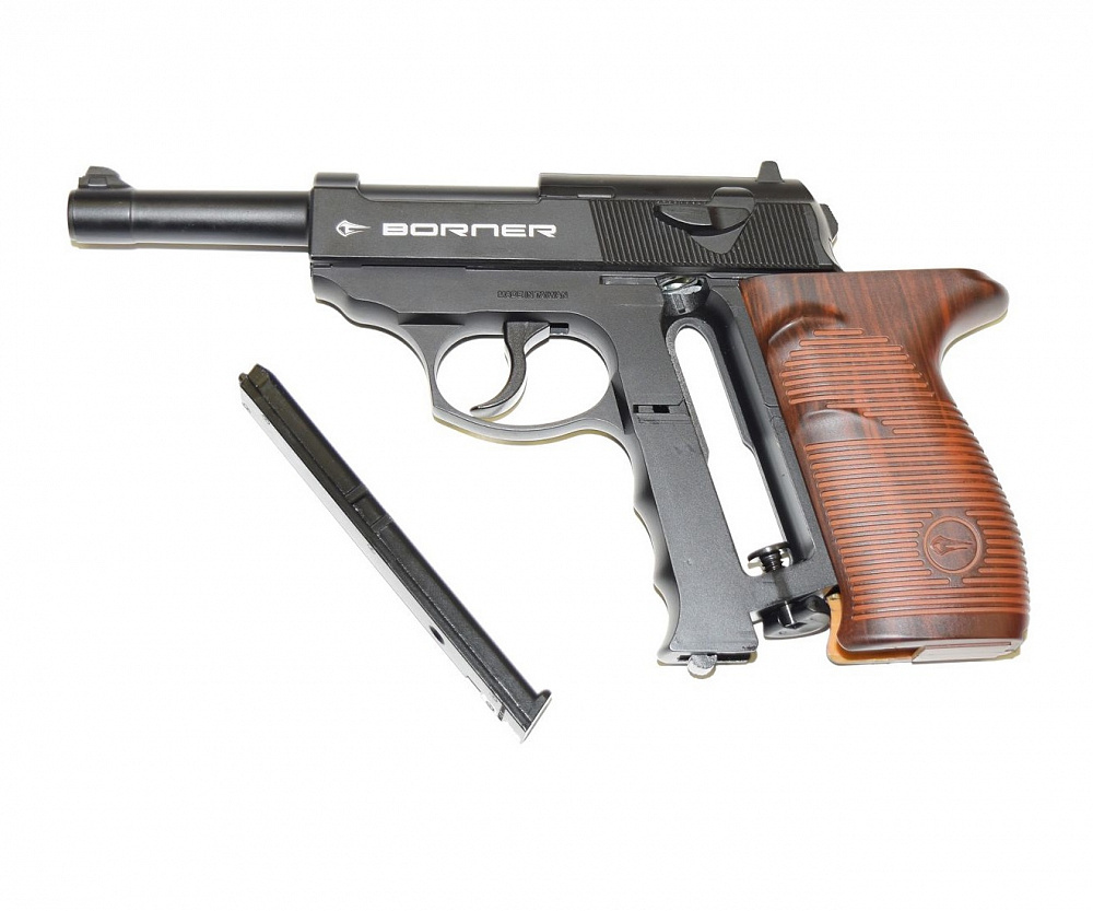 Пневматическая модель Borner C41 - отличный выбор стрелков любого уровня подготовки. У пистолета Borner C41 много общих черт с Crosman C41, обе модели просты и надежны и являются копией всемирно известного Walther P.38, широко распространенного боевого оружия в 20-40-х годах прошлого века.