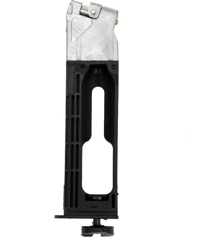 Механизм клапана выполнен из металла, а конструкция с обоймой и размещением баллона - из пластика. Магазин можно извлечь при помощи нажатия на круглую кнопку, расположенной рядом со спусковой скобой. У боеприпасов начальная скорость при выстреле достигает 128 м/с, что считается хорошим показателем при дульной энергии до 3 Дж. В данной модели есть возможность производить стрельбу двойного действия, т.е. как с предварительным взведением курка, так и с помощью самовзвода.