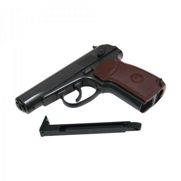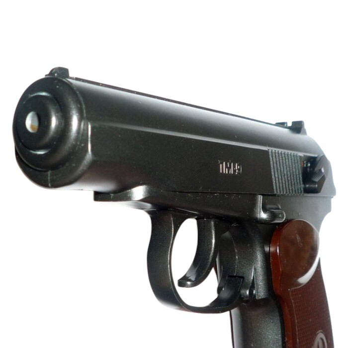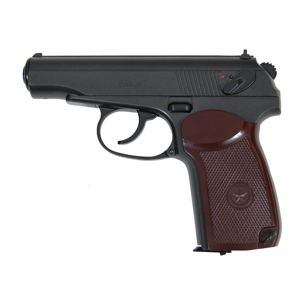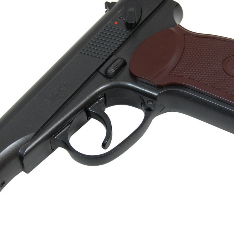 Стильная копия знаменитого пистолета Макарова от американской компании Borner. Пневматический пистолет Borner PM49 оснащен двойным механизмом: возможен самовзвод или ручной предварительный взвод курка. У спускового крючка Borner ПМ49 два хода: мягкий предварительный и более жесткий рабочий. Калибр оружия – 4,5 мм, а емкость магазина – 17 пуль (стальных шаров BB).