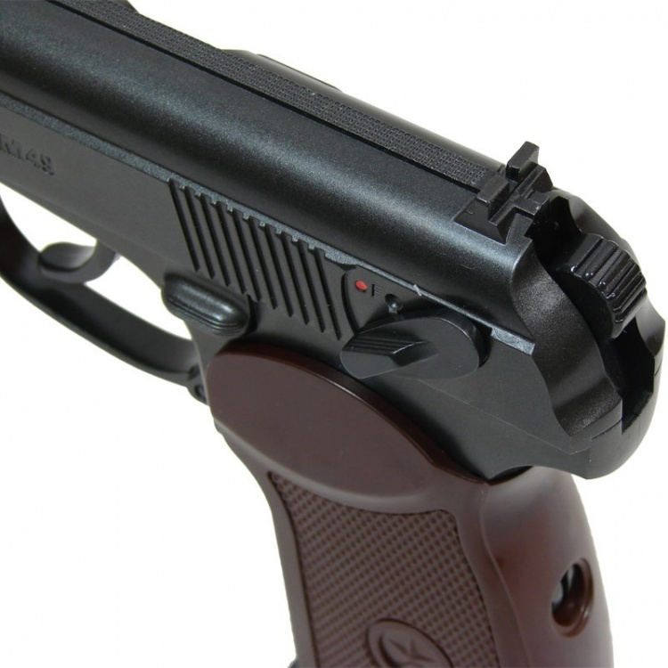 Пневматика Borner ПМ - копия всемирно известного пистолета «Макарова», сконструированного в 1949 г. Боевой аналог был на вооружении милицейских и армейских подразделений Советского Союза. Выполненная на русском инструкция облегчает эксплуатацию и знакомство с оружием. Металлический корпус и накладки из пластика на рукоятке придают оружию Borner ПМ49 стильный внешний вид. Корпус пистолета - цельный литой, позволяет взводить спусковой курок при неподвижности рамы.