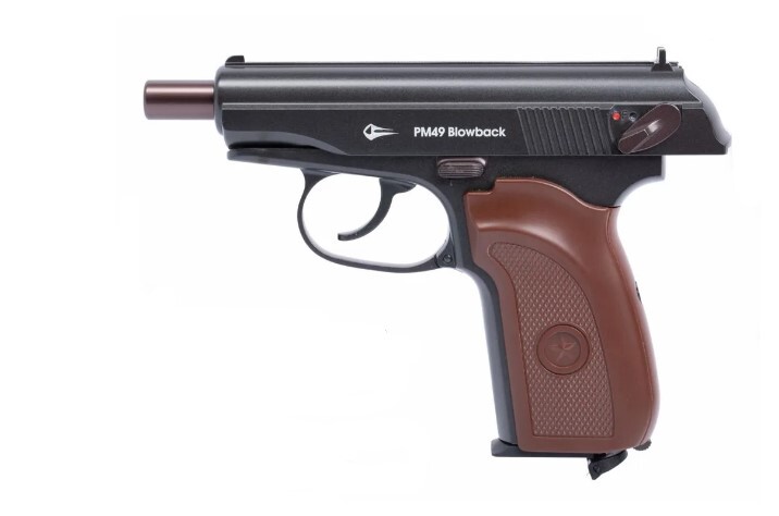 Модель ПМ49 от указанной фирмы стоит на пьедестале бестселлеров в нише пневматики, по облику напоминающей легендарный служебный пистолет Макарова. Образец отличился бюджетной стоимостью, несмотря на которую изделие остается надежным и простым в техобслуживании.