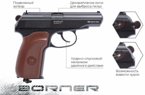 Описание пневматического пистолета Борнер ПМ 49 Блоубек 4.5 мм (Макаров)