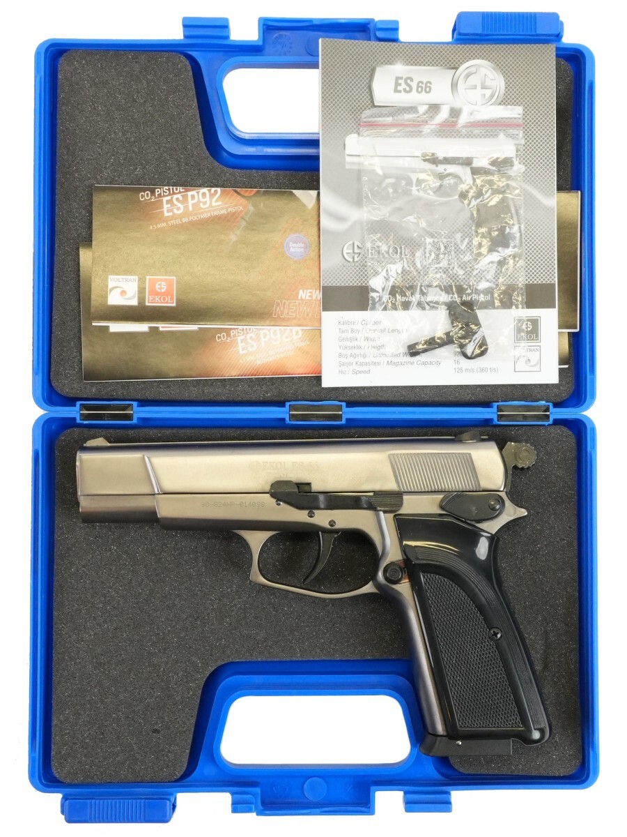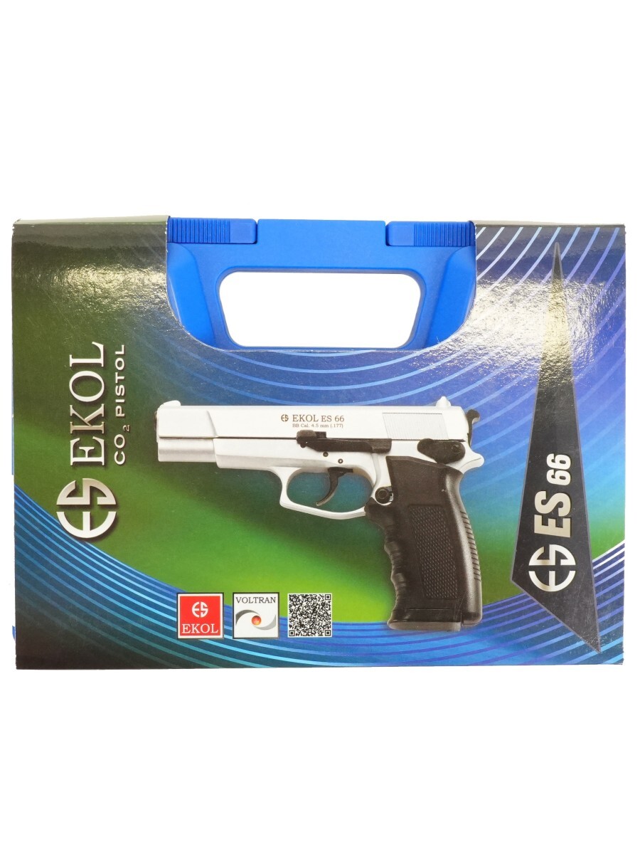 Пневматический пистолет Ekol ES 66 от турецкого производителя Ekol использует в качестве источника энергии 12-граммовые баллончики с углекислым газом.