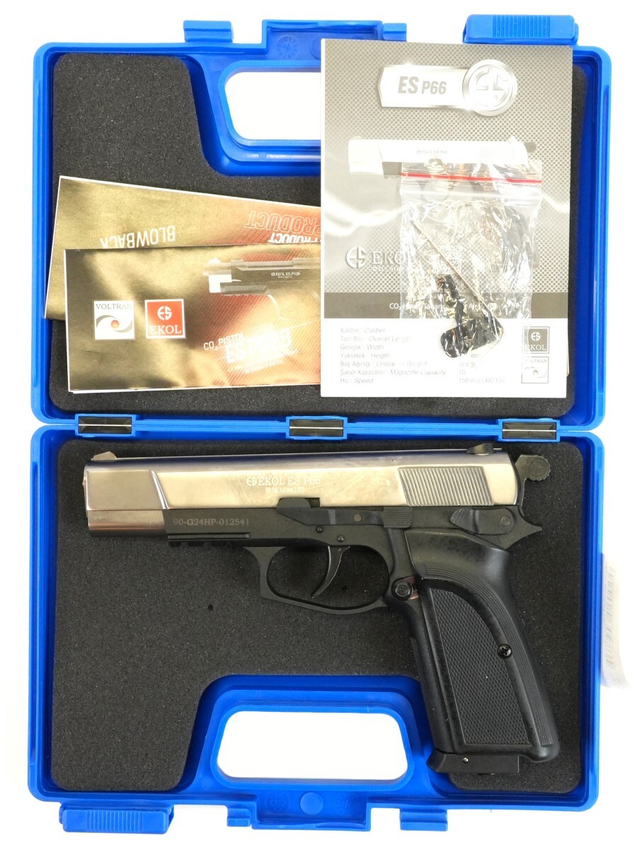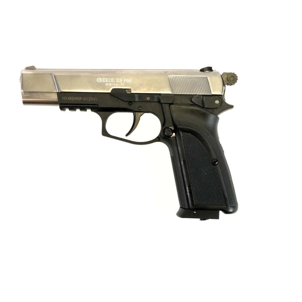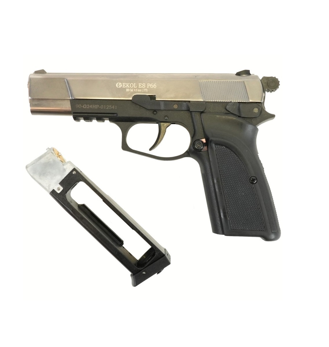Пневматический пистолет Ekol ES P66 от турецкого производителя Ekol использует в качестве источника энергии 12-граммовые баллончики с углекислым газом.