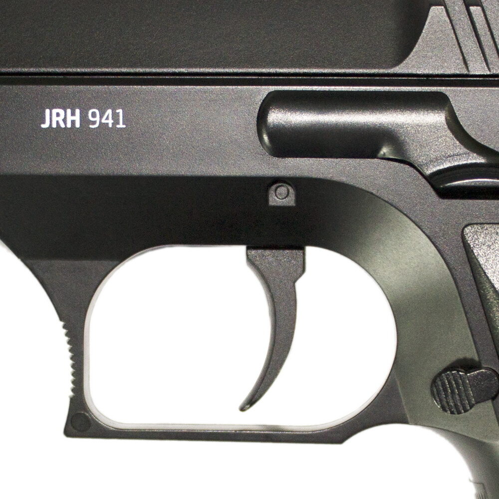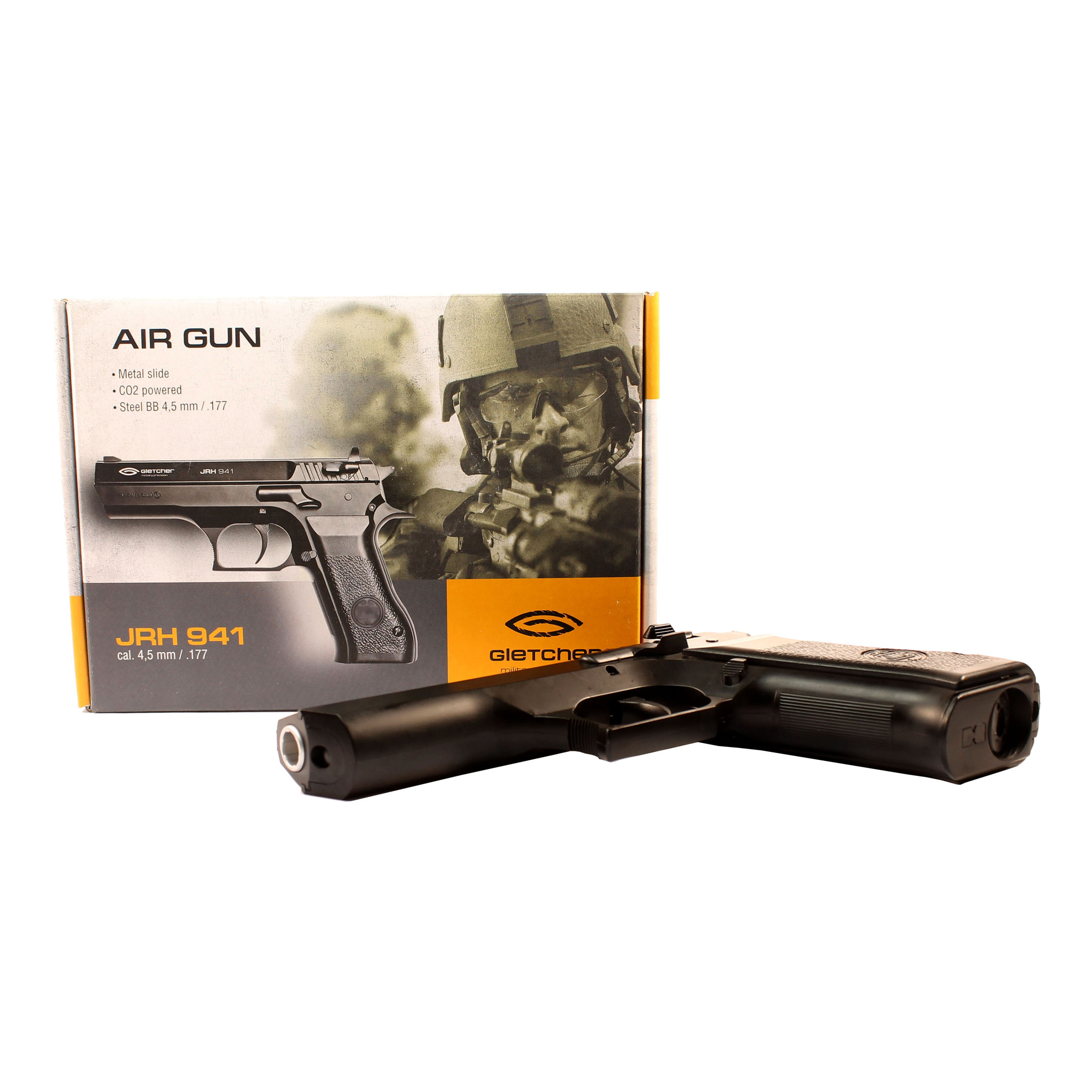 Gletcher JRH 941 – это американская копия одного очень известного боевого пистолета. Пневматического сородича огнестрельного оружие также постигла участь его праотца – популярности данной модели не занимать. Сотрудники западной компании, которые работали над конструкцией данного оружейного творения, постарались приложить все усилия, дабы детище их имело максимум схожестей с оригиналом. Пожалуй, результат очевиден. Разработчики пистолета справились с поставленной перед ними задачей на «отлично». Даже габариты и масса пневматики аналогична данным оригинала. Кстати, масса пистолета составляет восемьсот граммов. Это порадует любителей массивного оружия. Для повышения схожестей моделей в конструкцию Gletcher JRH 941 включена металлическая затворная рама, а также предохранитель флажкового типа, который отлично справляется со своей защитной функцией, ну, или страховочной, как кому будет угодно.Технические характеристики данной модели вполне приемлемы для развлекательной и спортивной стрельбы. Скорость выстрела из этого пистолета составляет не более ста тридцати метров за секунду. Средний показатель – примерно сто пятнадцать метров. Магазин оружия рассчитан ровно на двадцать одну пули. Для стрельбы из Gletcher JRH 941 свинцовые остроконечные пули не пригодны. Подходят для данной пневматики исключительно шарики ВВ типа. Калибр пистолета имеет стандартное значение – 4.5 мм. На практике данная модель оружия показала себя отлично. Уровень комфорта при стрельбе высокий, точность оружия также весьма и весьма приятная. Единственно, что можно отметить, так это повышенный показатель разброса пуль при стрельбе на дистанции более пятнадцати – двадцати метров. Но это совсем не странно, ведь данный пистолет предназначен для ведения прицельной стрельбы на коротких дистанциях. Если есть желание поупражнять в мастерстве стрельбы на большом расстоянии от цели, то лучше присмотреть себе винтовку.