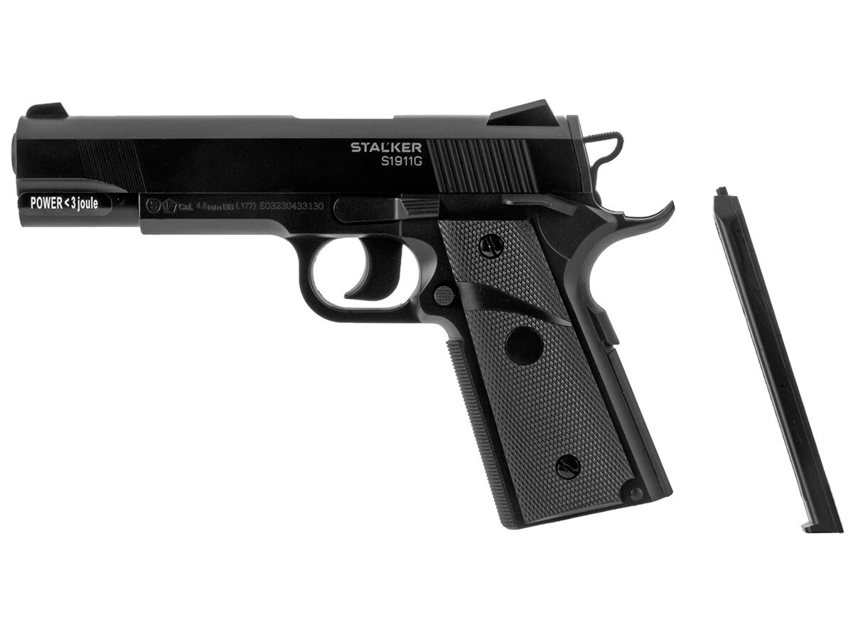 Stalker S1911G 4,5 мм – это модель 2015-го года, которая, была создана с использованием многолетнего опыта по производству современного пневматического оружия, а также результатов тщательного анализа покупательских запросов.