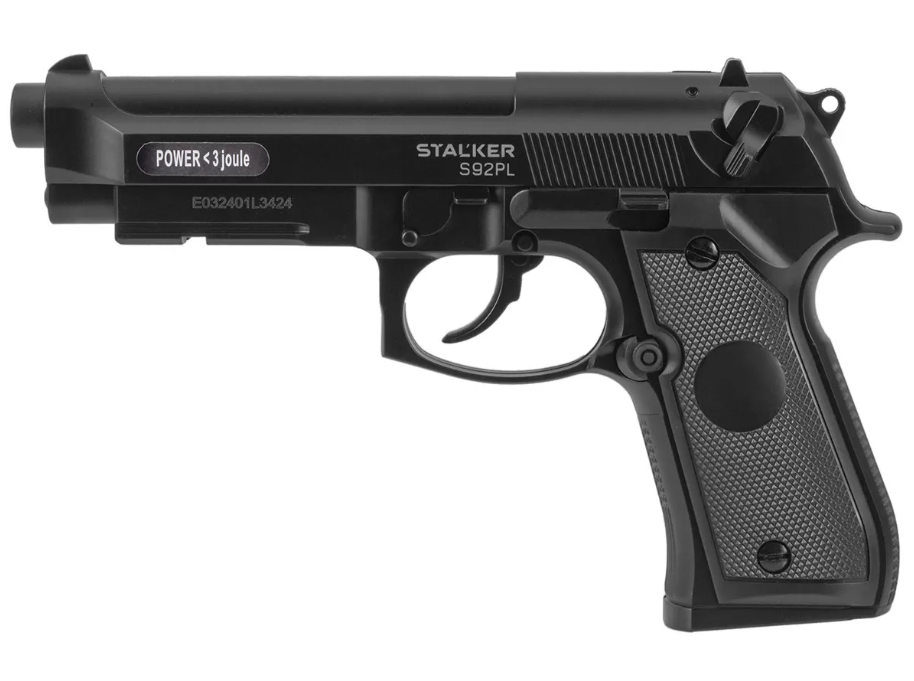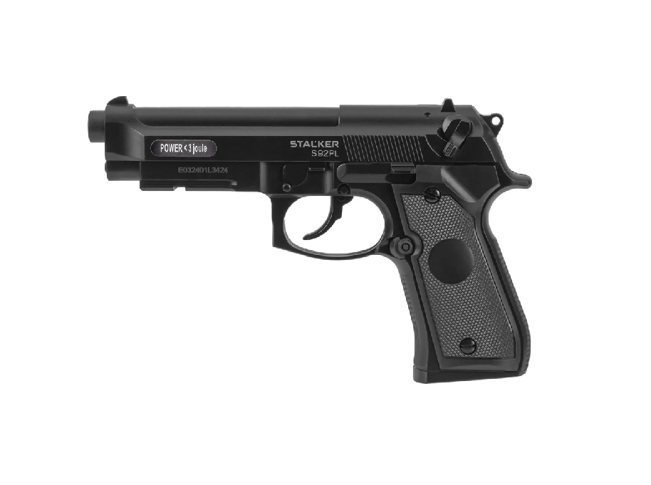 Если вы – поклонник классической Беретты 92, то пневматический пистолет Stalker S92PL 4,5 мм был создан специально для вас. Внешне он крайне похож на эту прославленную модель, а особенное сходство ощущений при держании этого оружия в руке обеспечивает высокое качество пластика из которого сделан данный пистолет. Весит Stalker S92PL: 500 грамм. Его длина составляет 210 мм.