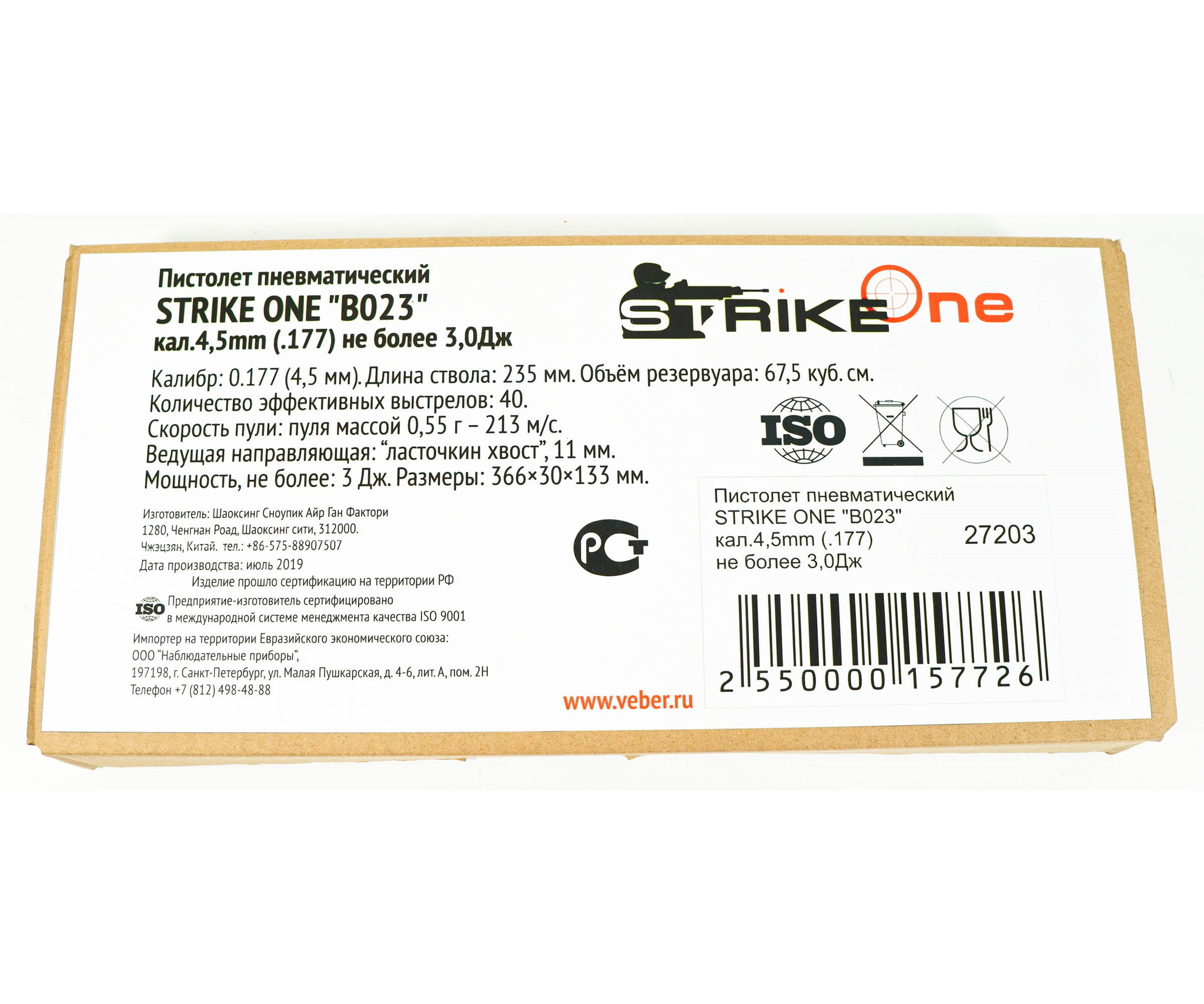 Пистолет пневматический STRIKE ONE "B023" кал.4,5mm