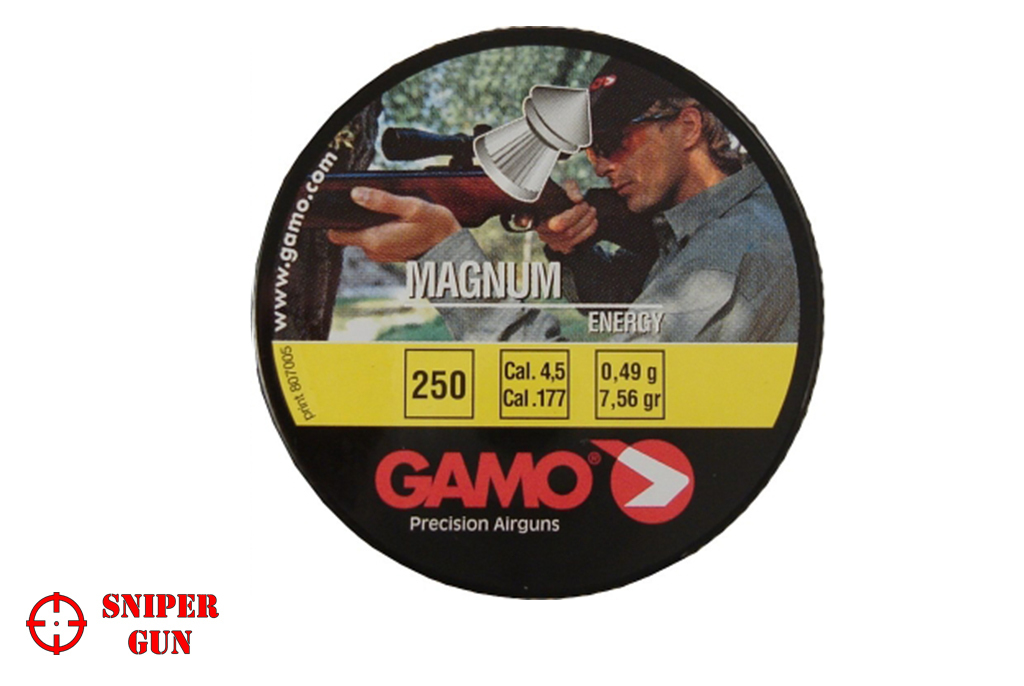 Gamo Magnum 4,5 мм для пневматики имеют двойное обтюрирующее кольцо в головной части пули, что увеличивает экспенсивность и обеспечивает хорошие результаты при отстреле мелкой живности. Количество пуль в банке - 250 штук средним весом 0,49 грамм.