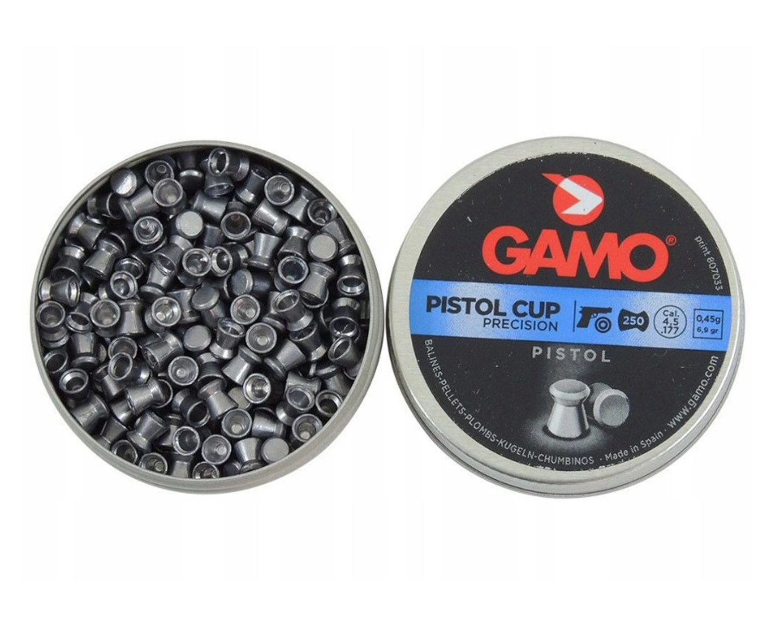 Пневматические свинцовые пули Gamo Pistol Cup отлично подходят для пневматических пистолетов, данная модель рассчитана для стрельбы по мишеням. Относительно стандартных свинцовых пуль данная линейка имеет уменьшенный вес для более продуктивной работы с маломощными пистолетами. Головная часть пули - плоская, кол-во в банке 250 штук.