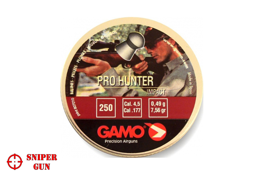 Gamo Pro Hunter 4,5 мм для пневматики предназначены для развлекательной и спортивной стрельбы по мишеням, пробивают твердые поверхности. Также используются для охоты на мелкую живность, например, крыс и ворон. Количество пуль в банке - 250 штук средним весом 0,49 грамм. Отлично рассчитанный центр тяжести пули; головная часть имеет округлую поверхность (domed).