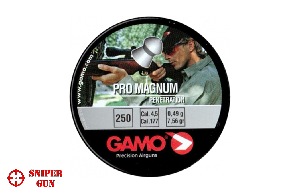 Gamo Pro Magnum 4,5 мм для пневматики предназначены для развлекательной стрельбы и в охотничьих целях. Количество пуль в банке - 250 штук средним весом 0,49 грамм. Отлично рассчитанный центр тяжести пули; головная часть имеет круглую поверхность, благодаря этому пули остаются в потоке воздуха и незначительно отклоняются от траектории и впитывают максимальную скорость.