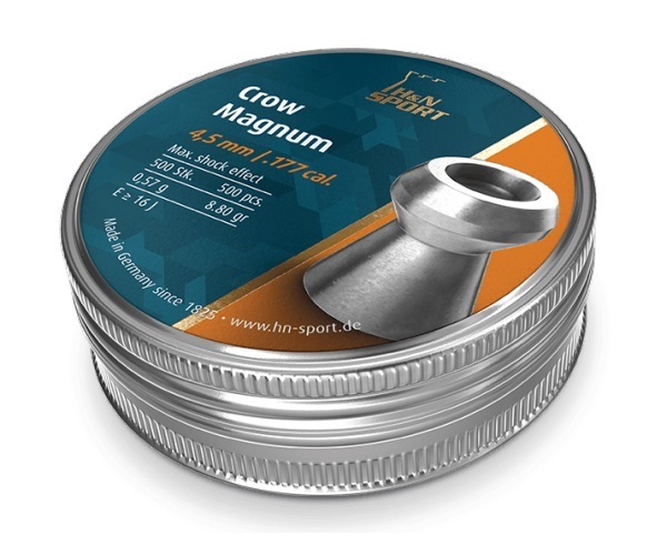 Пули H&N Crow Magnum - средние по тяжести охотничьи пули с настильной траекторией полета для средних дистанций. Максимальное шоковое воздействие и деформация пули. Поверхность гладкая, с большой выемкой в головной части. В упаковке 500 штук.