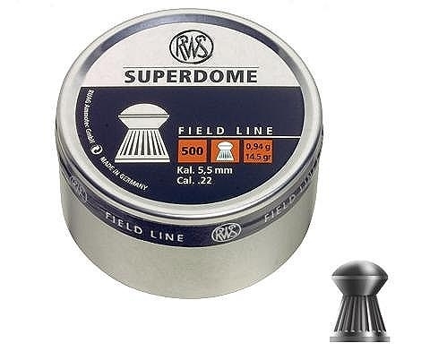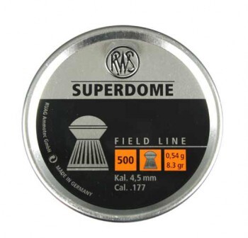 Пули свинцовые пневматические RWS SUPERDOME калибра 4,5 мм весом 0,54 грамма. Корпус рифлёный, с круглым наконечником. Контуры RWS SUPERDOME напоминают известные очертания английского бульдога. Конструктивные особенности обеспечивают высокую пробиваемость и проникающую способность пули RWS SUPERDOME. Подкупает высокой точностью поражения цели на больших расстояниях. Данная пуля пользуется популярностью при стрельбе на охоте как из пневматических винтовок пружинного действия, так и ружей, снабжённых пневмоцилиндром (баллоном).