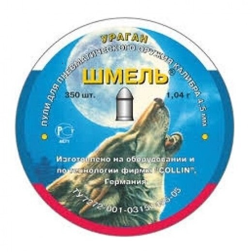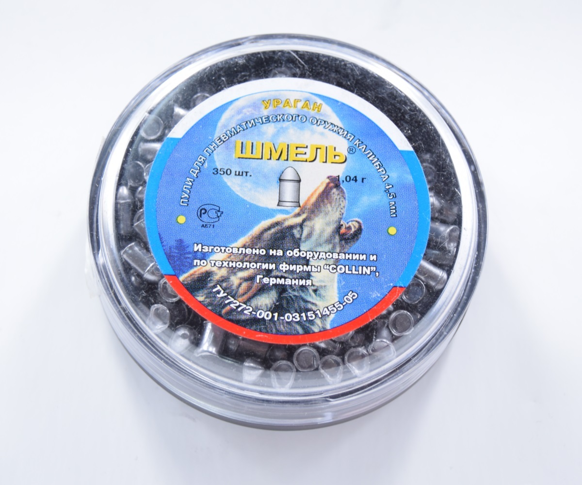 Пули пневматические Шмель 4,5 мм 1,04 грамма (350 шт.) - тяжелые свинцовые пули российского производства, используемые для охоты. Пули Шмель характеризуют отличные баллистические показатели. Калибр пуль 4,5 мм. Вес 1,04 гр. В банке 350 шт.