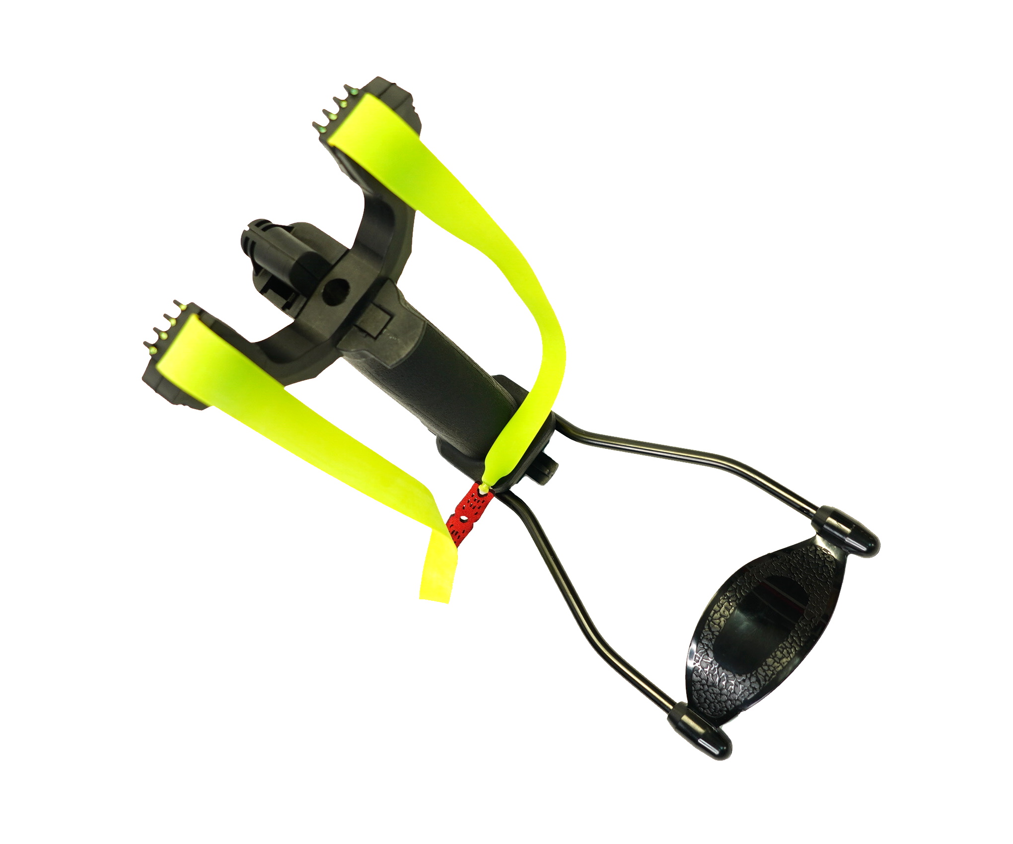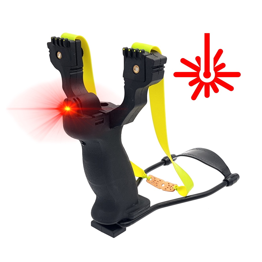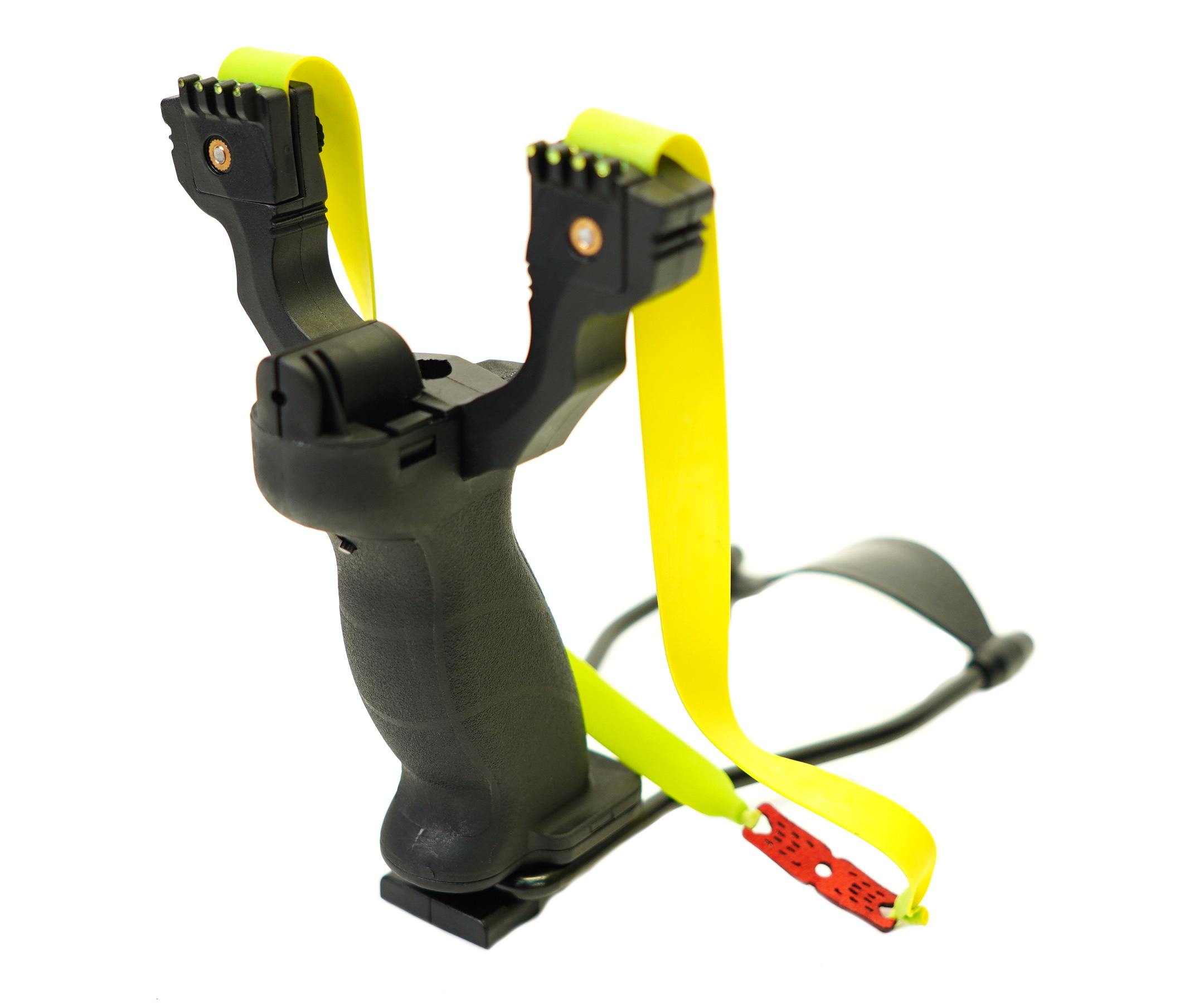 Увесистая большая рогатка Centershot Hammer с тяжелой пистолетной рукоятью и упором будет удобна даже самому крупному мужчине. На рогатке имеются несколько прицельных приспособлений: диоптрический прицел по центру между рогами, а также специальные целики на каждом роге рогатки. Кроме того, снизу в рукоятке располагается магазин для 8-ми миллиметровых шариков. Подача снарядов осуществляется с нажатием специальной кнопки.