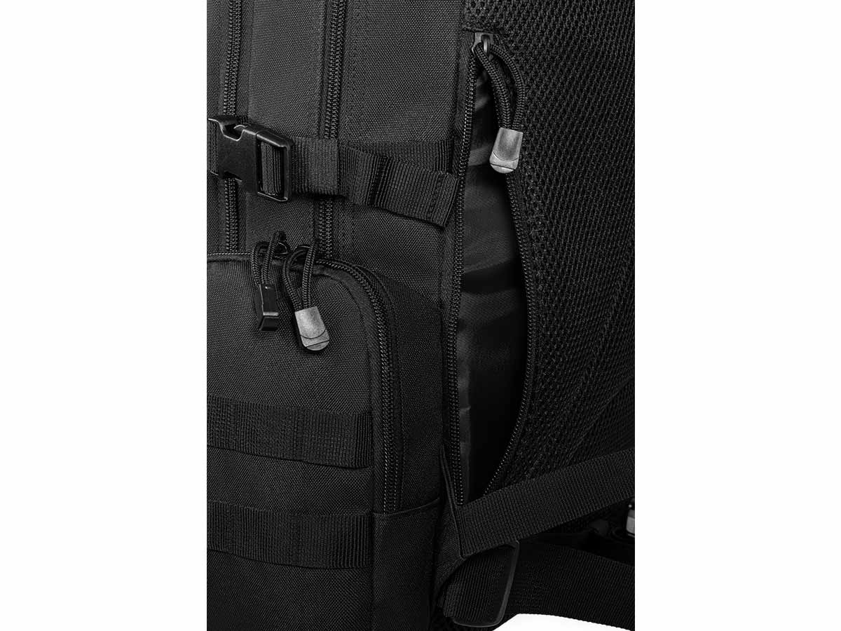 - Большой карман в спинке с доступом с верхней стороны (с липучкой Velcro) и сбоку (молния), доступ к карману возможен не снимая рюкзак с правого плеча