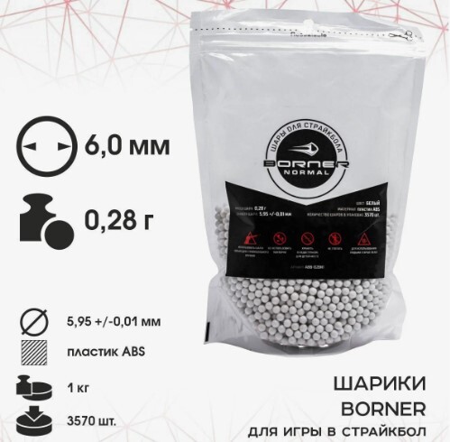 Шары Borner для игры в страйкбол 0.28г, 3750шт.