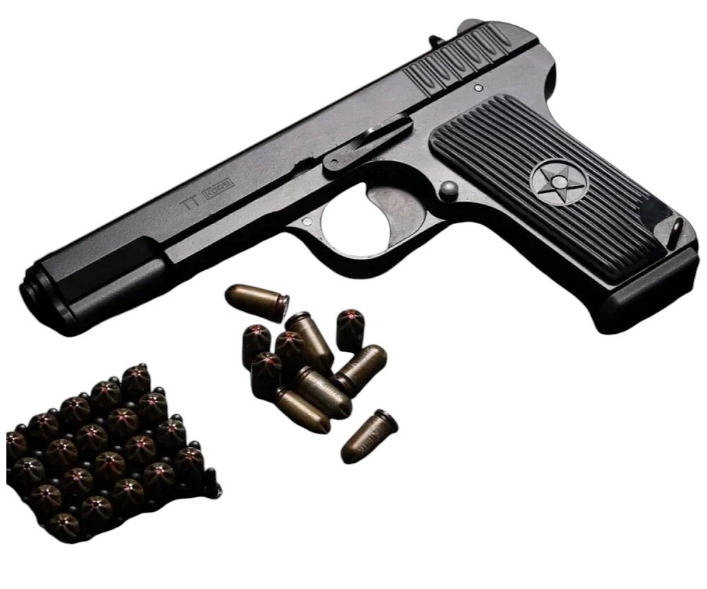 Сигнальный пистолет ТТ (Токарева) – оружие, переделанное из боевого, предназначенное для подачи шумовых и звуковых сигналов. Строго говоря, сигнальный пистолет ТТ назвать полноценным оружием нельзя, несмотря на то, что он производится из самого настоящего боевого пистолета. Аббревиатура «ТТ» состоит из имени конструктора (Токарев) и названия завода (Тульский) был поставлен на вооружение Советской Армии в 1933 году, и стал основным оружием офицерского состава в период Великой Отечественной войны. В разные годы боевой ТТ выпускался во многих странах.