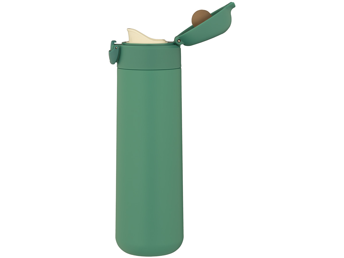 Колба и корпус изготовлены из высококачественной пищевой нержавеющей стали. Вакуумная изоляция надолго сохраняет температуру — горячие напитки остаются тёплыми до 12 часов. Внешнее матовое покрытие зелёного цвета устойчиво к повреждениям и приятно на ощупь.