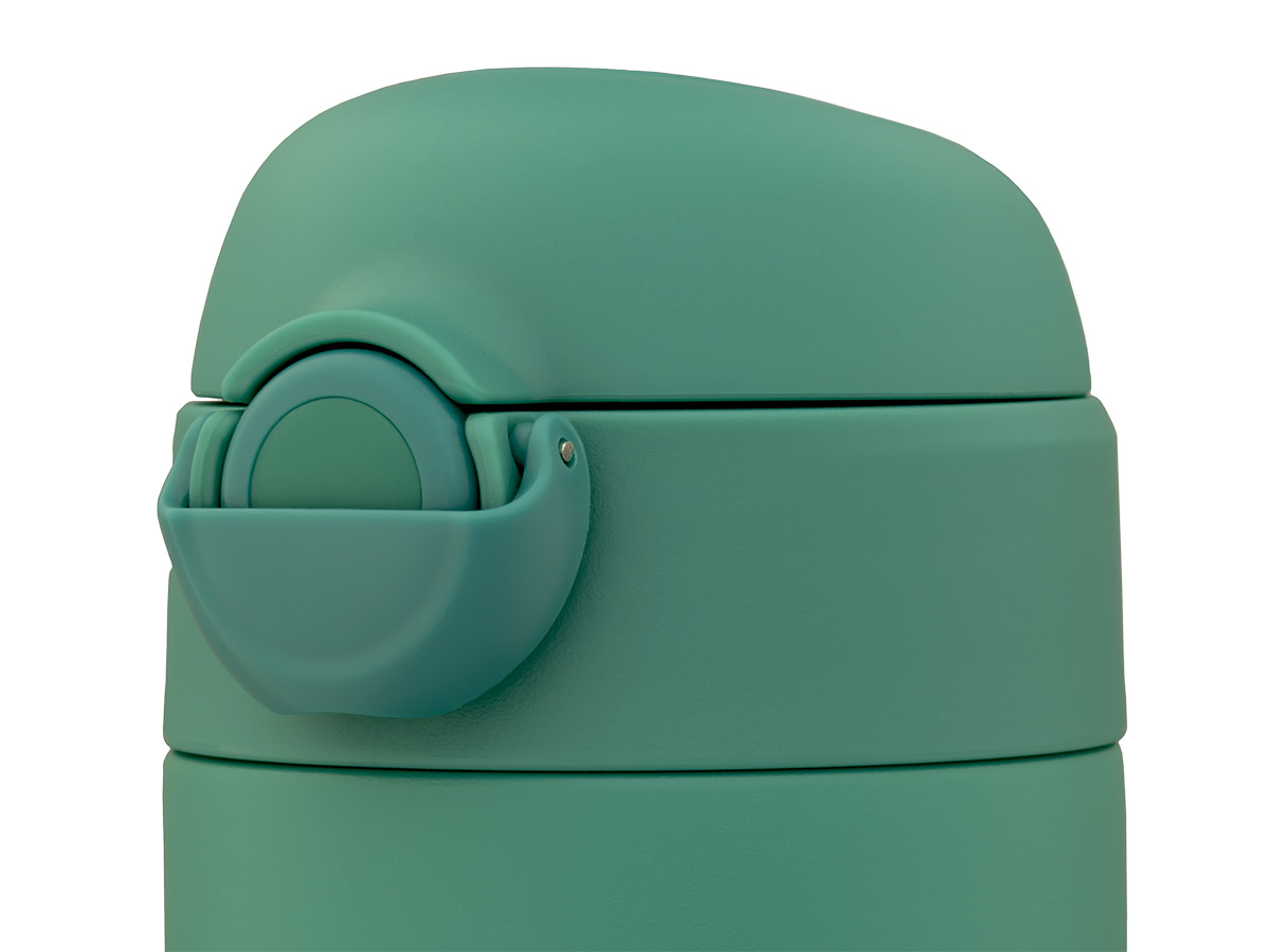 Продуманная конструкция крышки-пробки позволяет открывать её лёгким нажатием на кнопку и закрывать одной рукой. Термокружка имеет защиту от случайного открывания в виде специального откидывающегося блокиратора кнопки.
